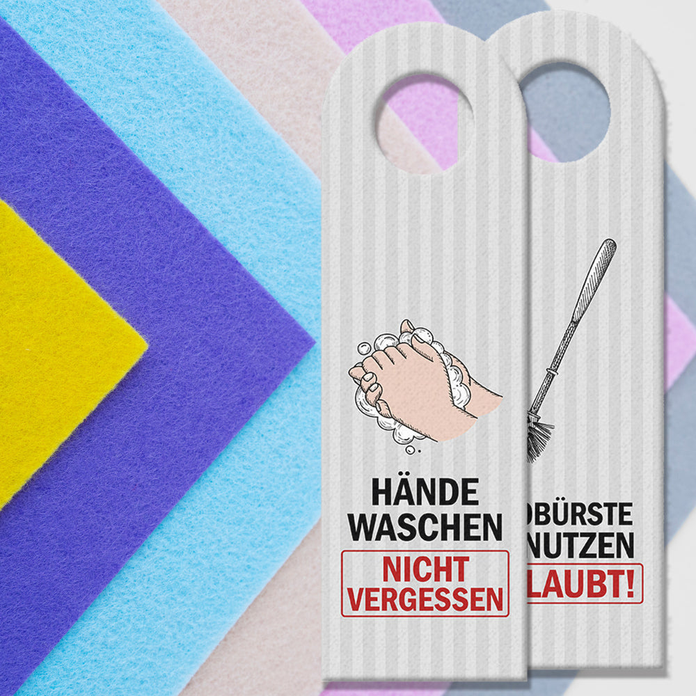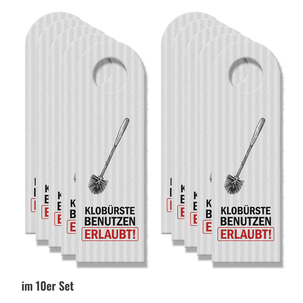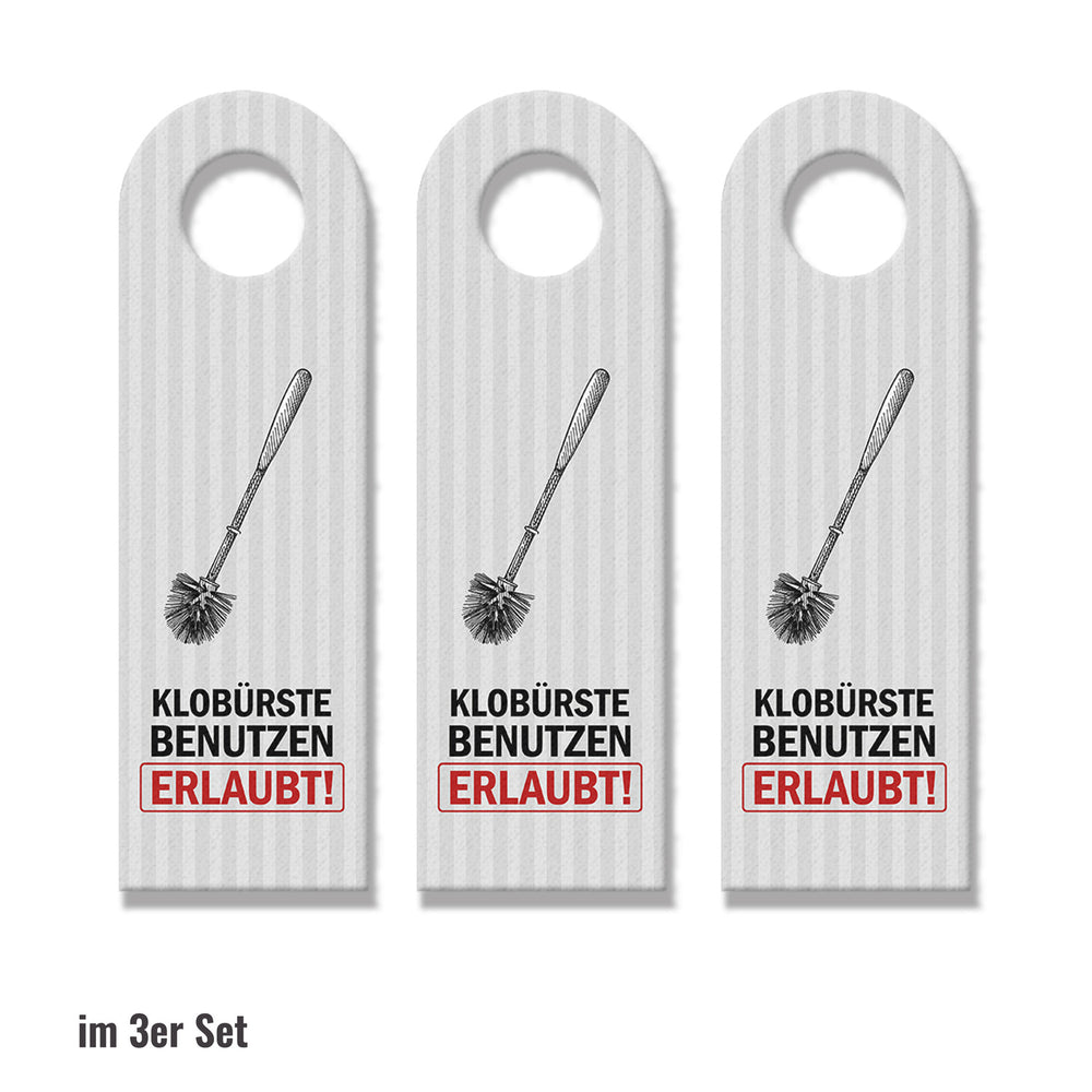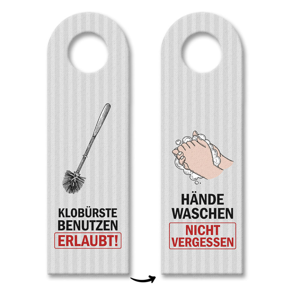 - 1x Klobürste benutzen erlaubt oder Hände waschen Türhänger in der gewählten Setgröße