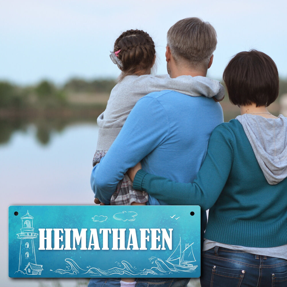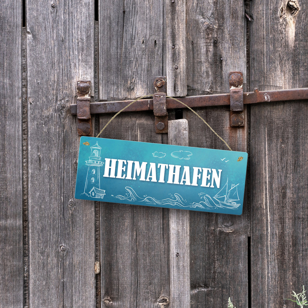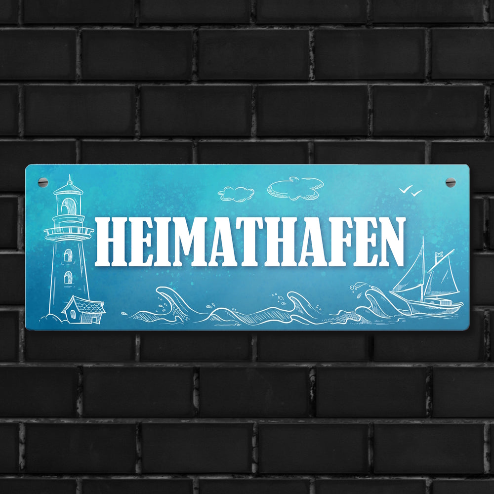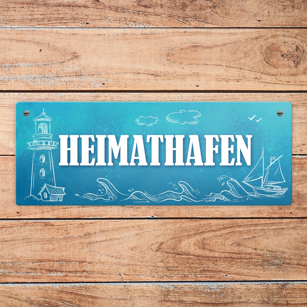- Lieferumfang: 1x Metallschild mit maritimen Motiv und Spruch: Heimathafen