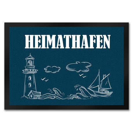 Heimathafen Fußmatte mit Schiff und Meeresmotiv