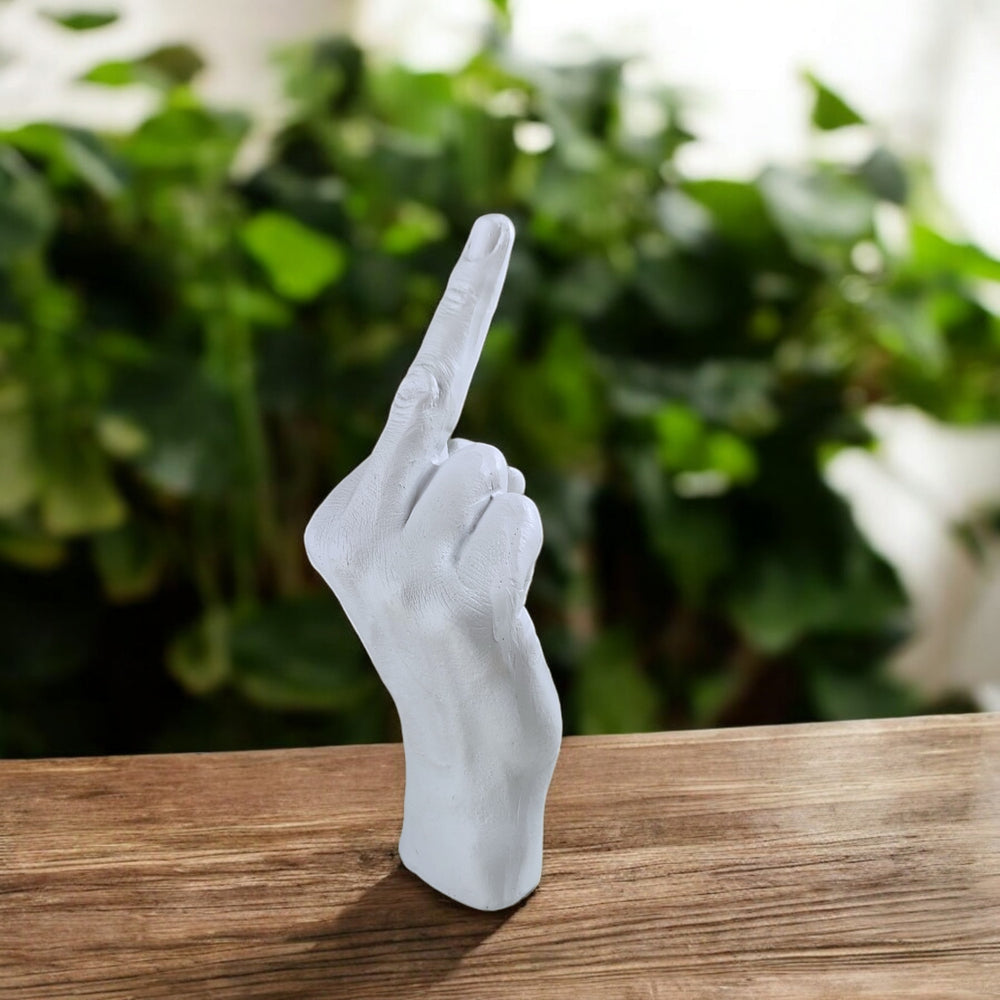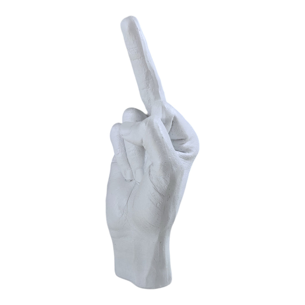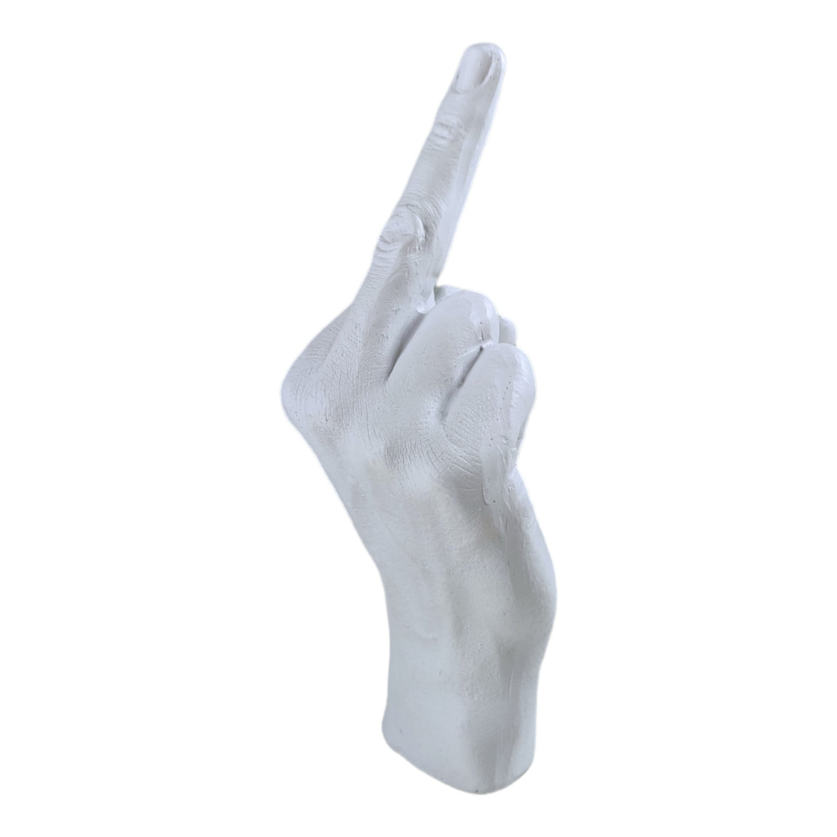 - Die Skulptur zeigt eine detailreiche weiße Hand, die den Mittelfinger präsentiert. Ihr minimalistisches Design passt perfekt zu moderner Einrichtung und Kunst-Liebhabern. Sie kombiniert Funktion und Ausdrucksstärke und macht definitiv Eindruck als Tischdekoration.