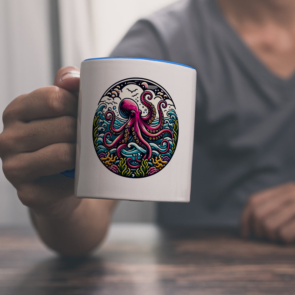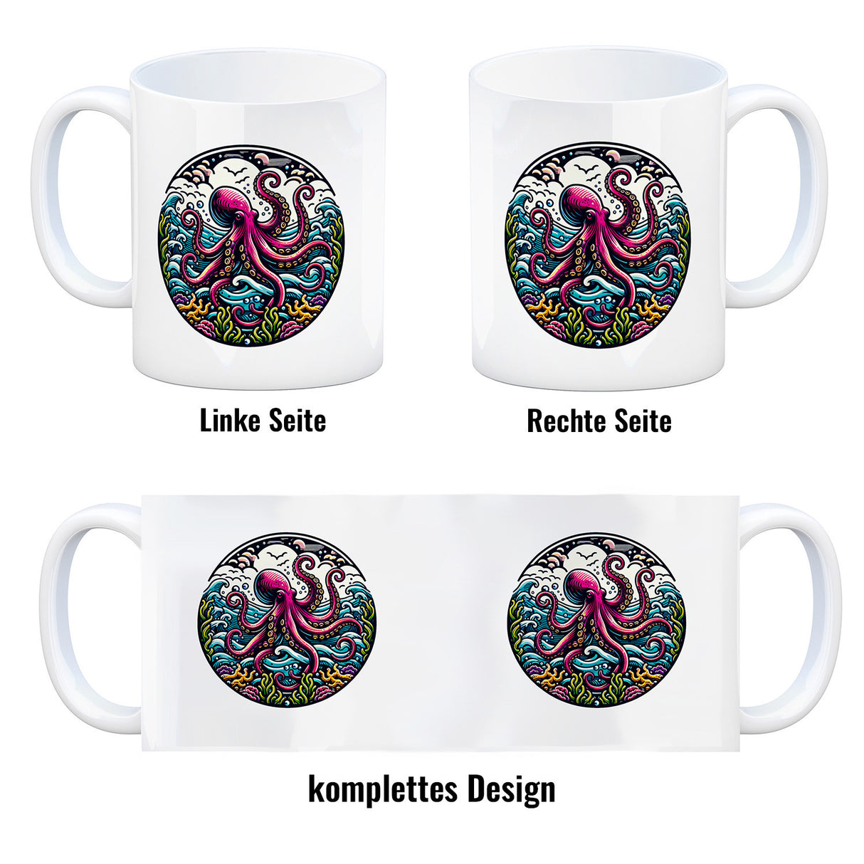 - Hey, Meerjungfrauen und Tritons, macht euch bereit für ein Stelldichein mit dem charismatischsten Achtarmigen des Ozeans! Unser Oktopus Kaffeebecher bringt mit seinem prächtigen Kraken und dem tiefblauen Ozean Motiv die Unterwasserwelt direkt zu eurem Frühstückstisch!