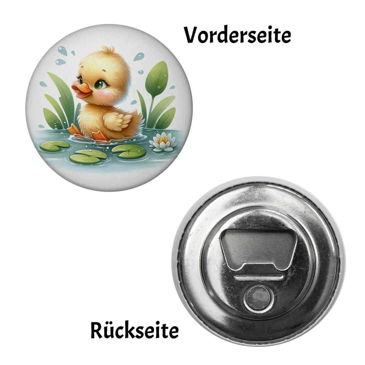 Willkommen in der zauberhaften Welt der Planschente Ente-Magnete – das perfekte Accessoire für alle, die Niedliches und Praktisches lieben! Unsere runden Magnete präsentieren eine entzückende Ente mit strahlend gelbem Gefieder, die fröhlich im klaren, blauen See planscht, umgeben von einer charmanten Wasserrose. Ob Standard oder mit integriertem Flaschenöffner – sie sind ein echter Hingucker für Kühlschrank und Co.Diese in Deutschland bedruckten Magnete sorgen nicht nur für gute Laune, sondern auch für Ordnung. Halte deine Einkaufslisten, Notizen oder Fotos sicher an Ort und Stelle – im Büro an der Magnettafel oder Zuhause auf dem Kühlschrank. Egal wo, die süße Ente zaubert jedem ein Lächeln ins Gesicht.Schlüpfe in die Rolle des Badewannenkapitäns oder Seeumrunders und mache deine Umgebung fröhlicher mit diesem liebevoll gestalteten Magneten. Ein ideales Geschenk für Kinder, Tierliebhaber oder Naturfreunde – die Planschente bringt Freude und ein Stück Natur ins Zuhause. Ein Geschenk, das garantiert nicht im Schrank verstaubt, sondern täglich genutzt und bewundert wird. Verschenke Freude und zaubere ein Lächeln aufs Gesicht deiner Lieben!