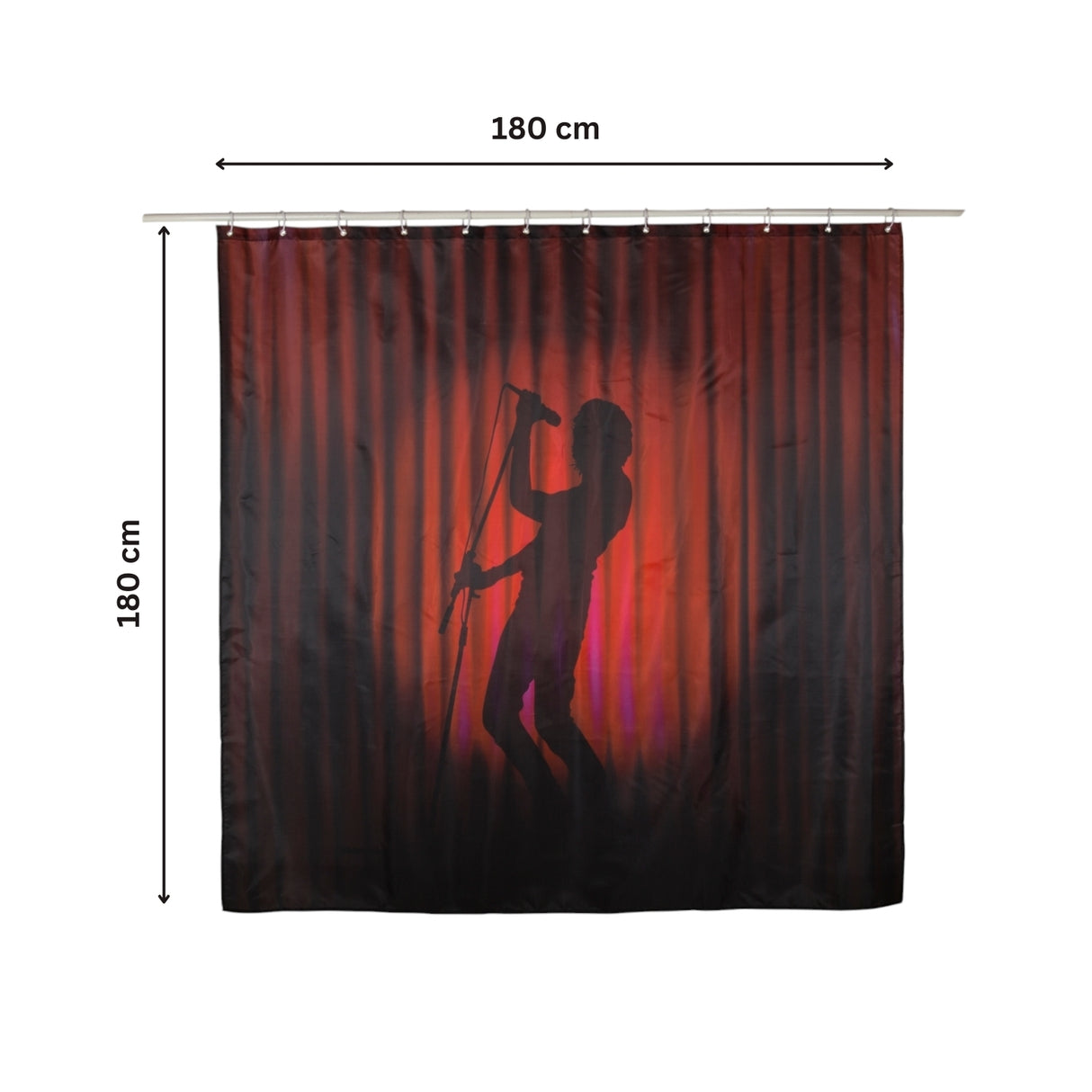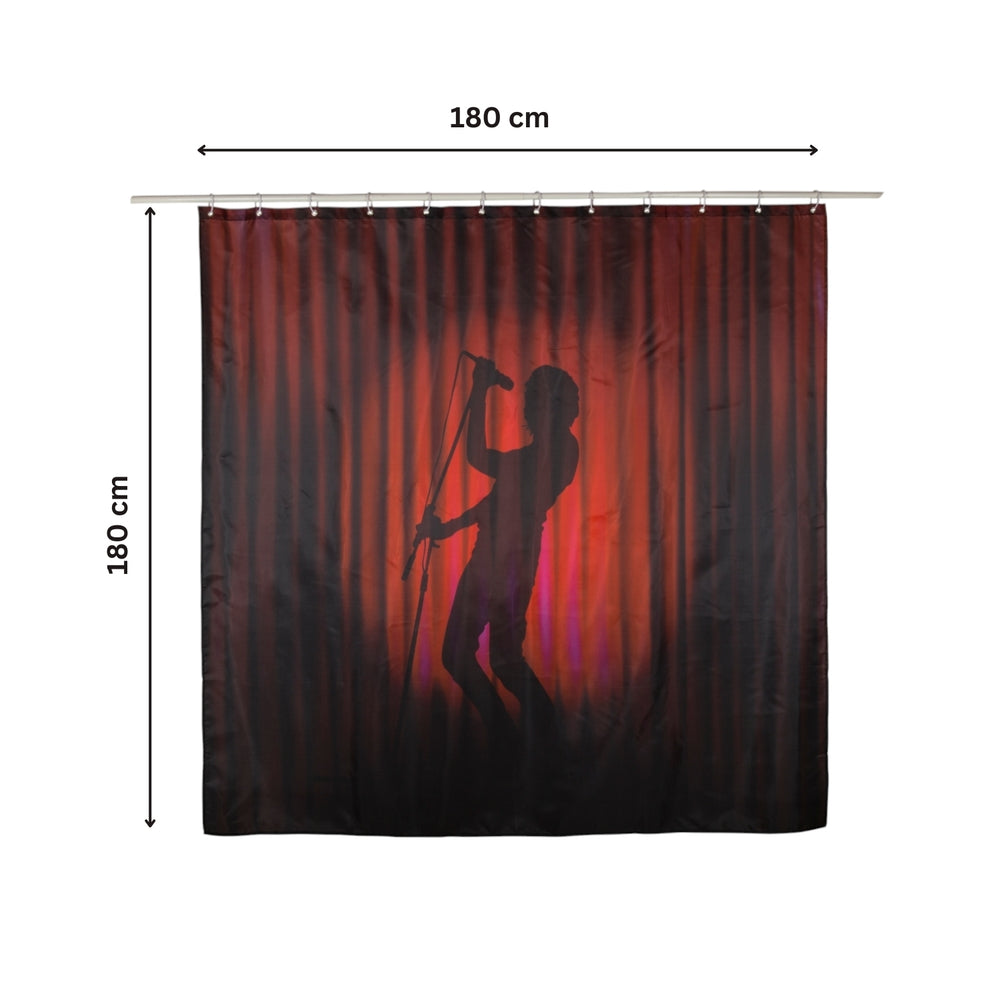 - Mit seiner eleganten Sänger-Silhouette in Schwarz auf einem feurigen Rot verleiht dieser Duschvorhang Ihrem Badezimmer eine künstlerische Note. Hergestellt aus strapazierfähigem Polyester, passt er perfekt in Ihre Duschkabine. Die verstärkten Ösen und mitgelieferten Ringe machen die Montage zum Kinderspiel. Design trifft auf Funktion!