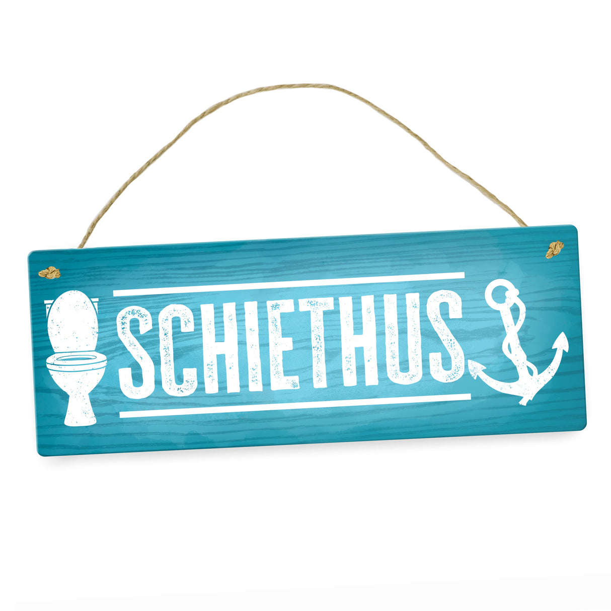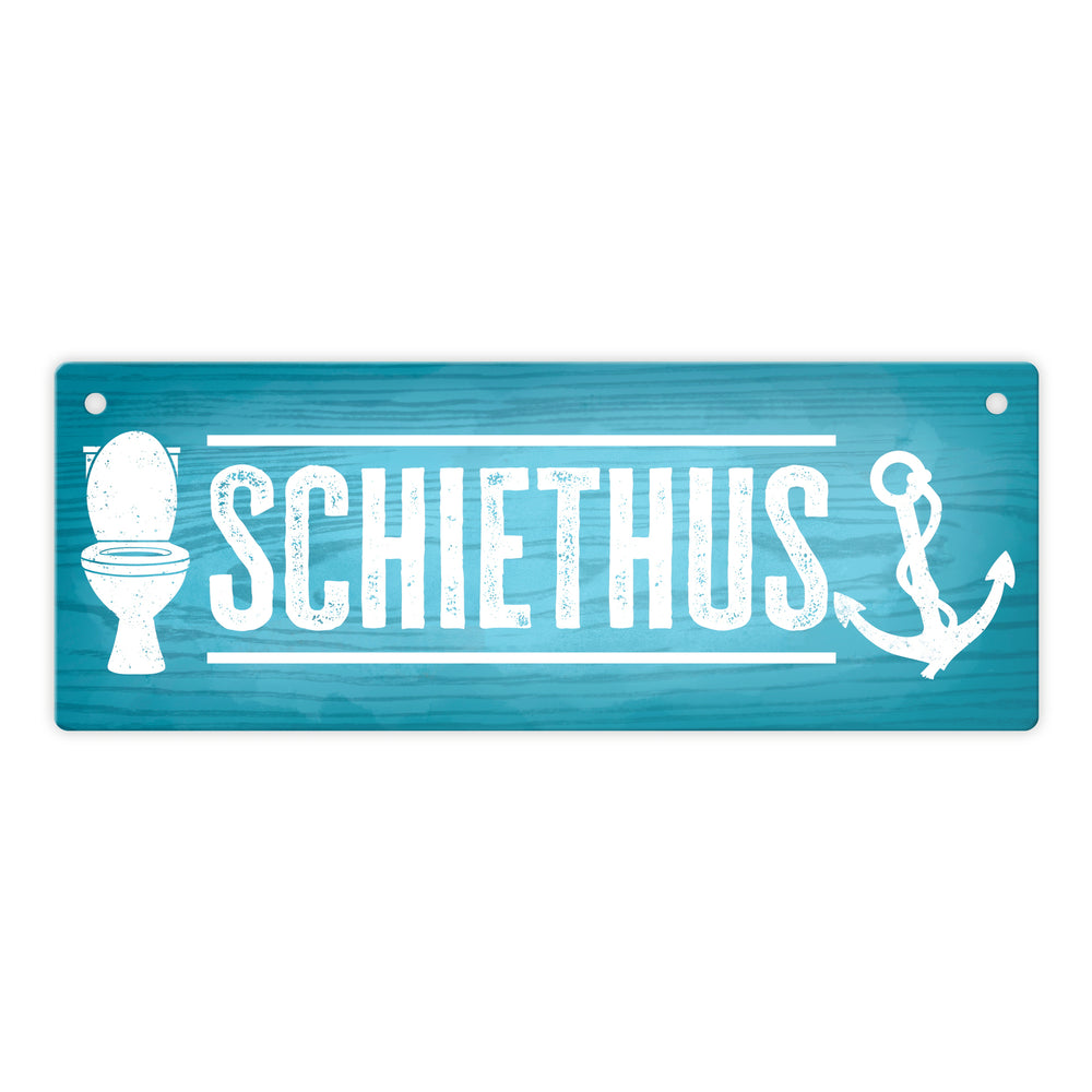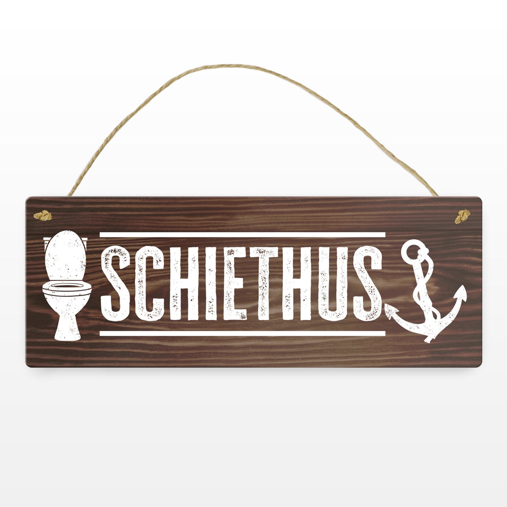 • Für die Toilette gibt es viele Namen: Das stille Örtchen, das Scheißhaus, das WC oder die Furzschüssel, um nur einige zu nennen. Dieses Metallschild hat einen lustigen Begriff aus der norddeutschen Sprache abgebildet. Das Schiethus bedeutet Toilette in Plattdeutsch.