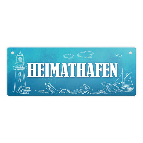 Metallschild mit maritimen Motiv und Spruch: Heimathafen