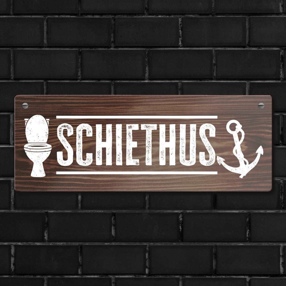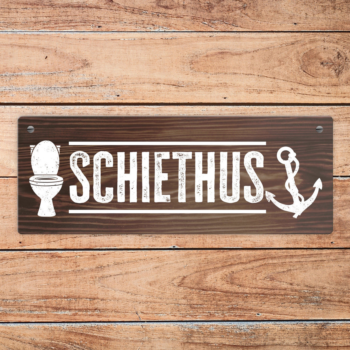• 1x Schiethus Plattdeutsch Metallschild für die Toilette in braun in der gewählten Größe