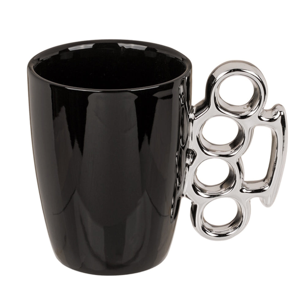 Mit der Schlagring Kaffeetasse - schwarz & silber zeigst du den Becherdieben im Büro was ihnen blüht. Material: | NICHT geeignet für Spülmaschine und Mikrowelle