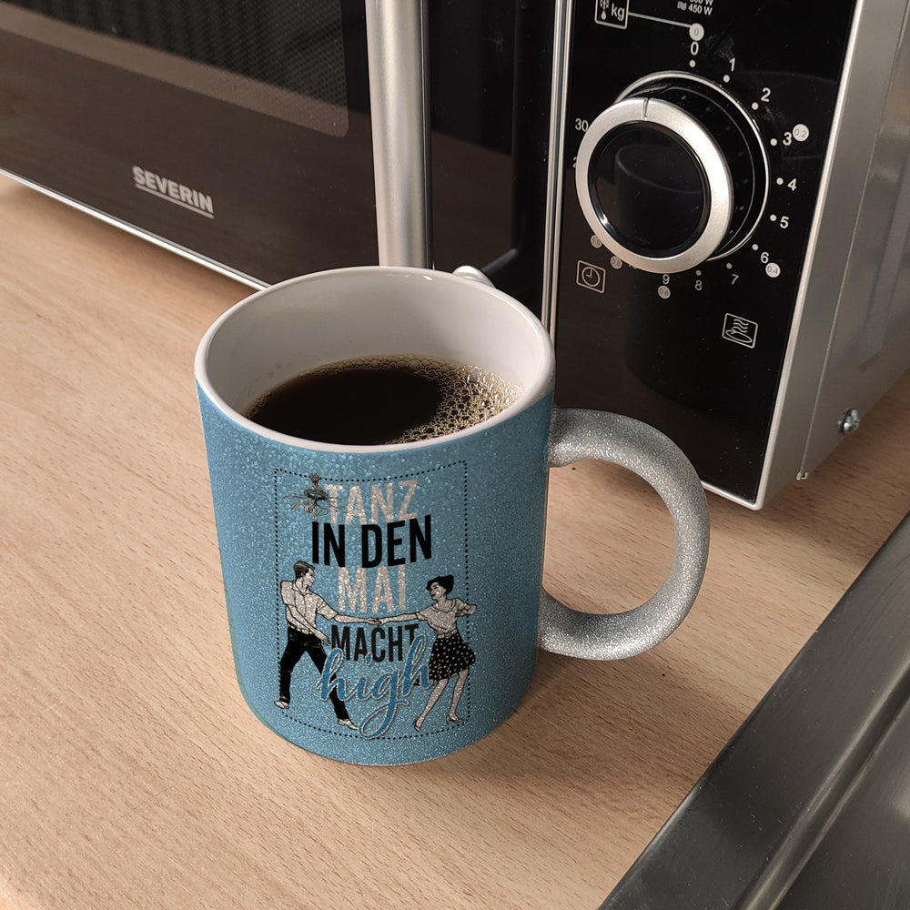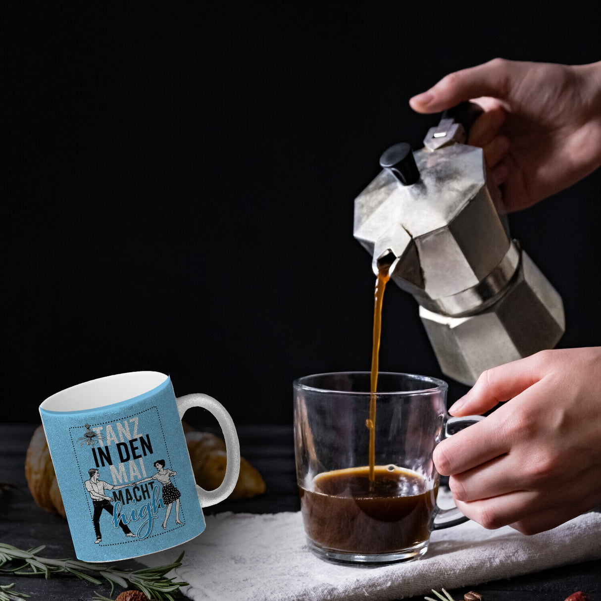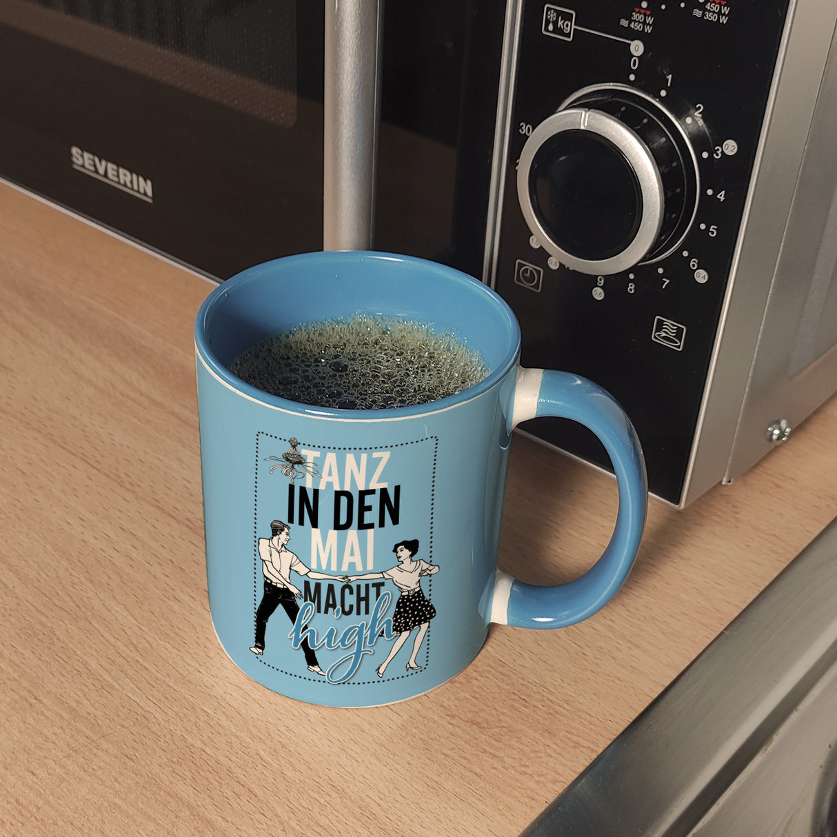 Dieser originelle Kaffeebecher mit dem Tanz in den Mai Motiv ist genau das Richtige für alle, die gerne tanzen. Der Becher ist in einem fröhlichen Blau gehalten und erinnert an die schönen Tage des Tanzes in den Mai. Mit seinem lustigen Druck auf beiden Seiten und der witzigen Aufschrift Tanz in den Mai macht high verbreitet er gute Laune beim Kaffeetrinken. Er ist aus robustem Porzellan gefertigt und somit spülmaschinenfest. Egal ob als Geschenk oder einfach für sich selbst, dieser Kaffeebecher ist immer eine tolle Geschenkidee zum 1. Mai!