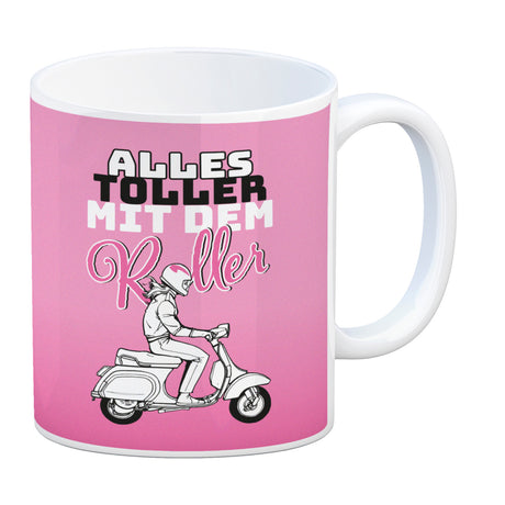 Alles toller mit dem Roller Kaffeebecher in {rosa} mit Rollerfahrerin