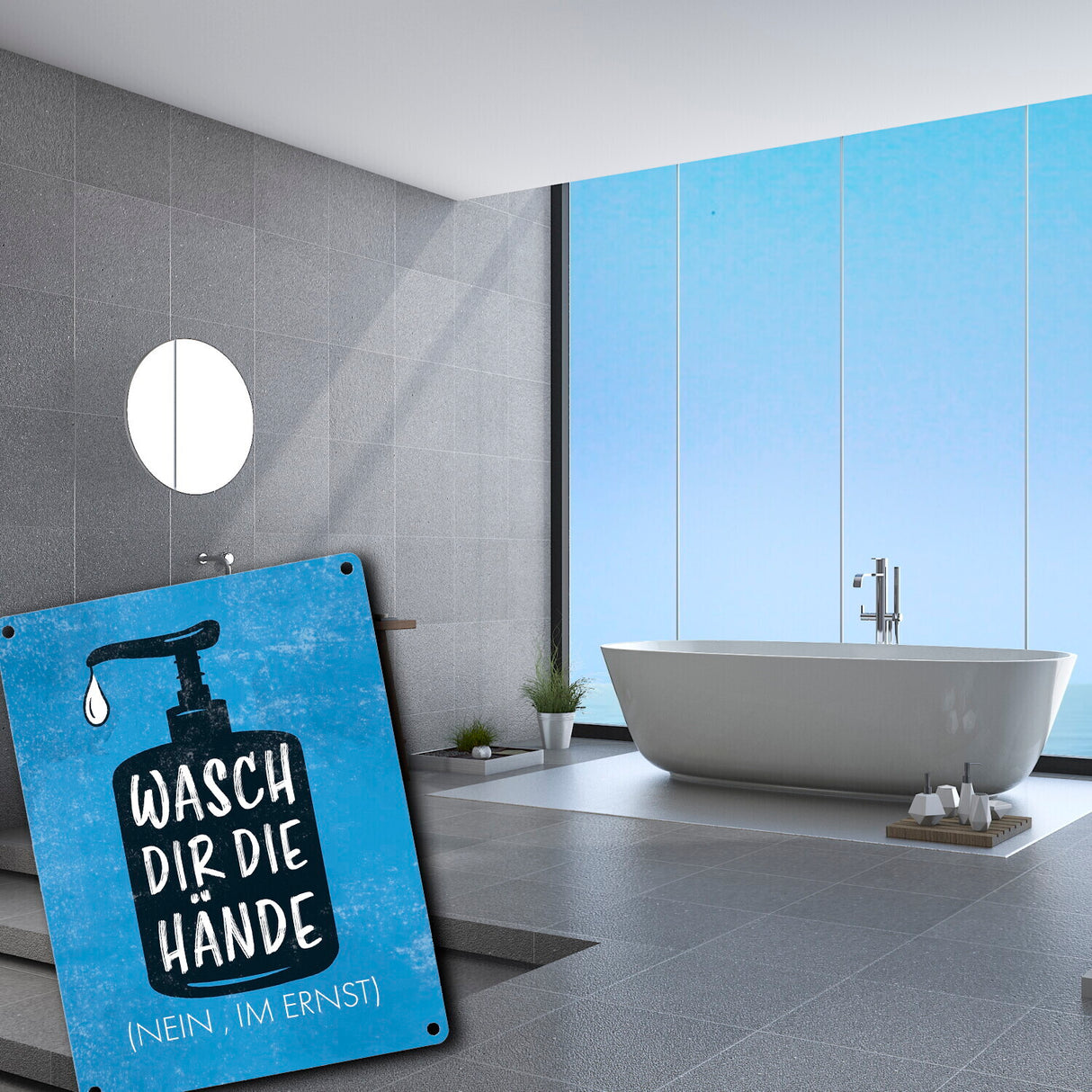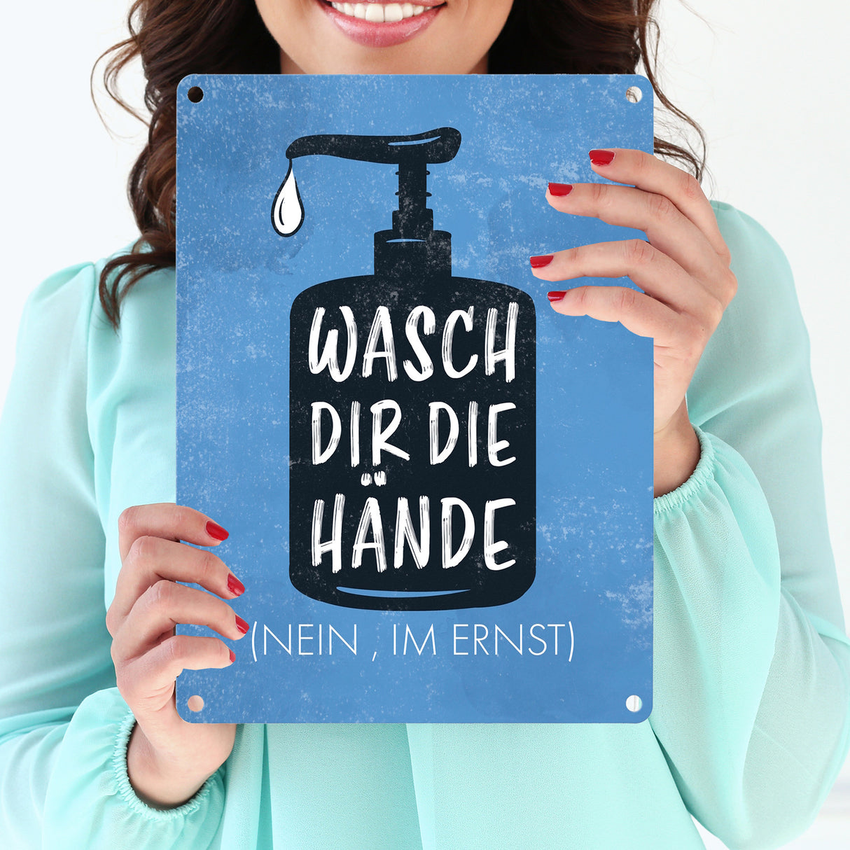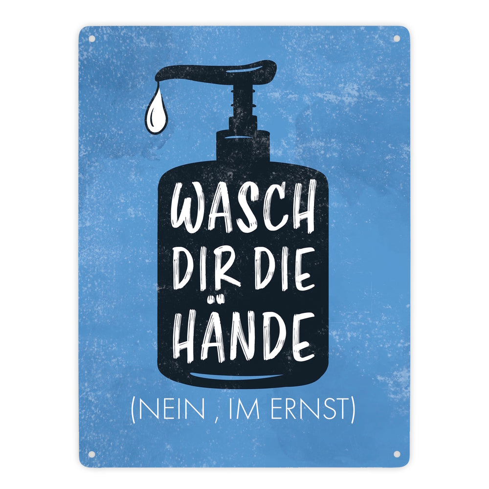 • 1x Wasch dir die Hände (Nein, im Ernst) - Metallschild mit Hygienehinweis in der gewählten Größe