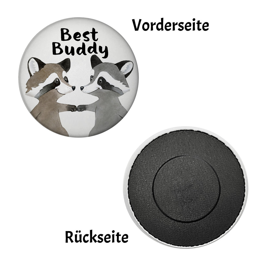 • 1x Waschbär Bruder und Kumpel Magnet rund rund mit Spruch Best Buddy in der gewählten Ausführung