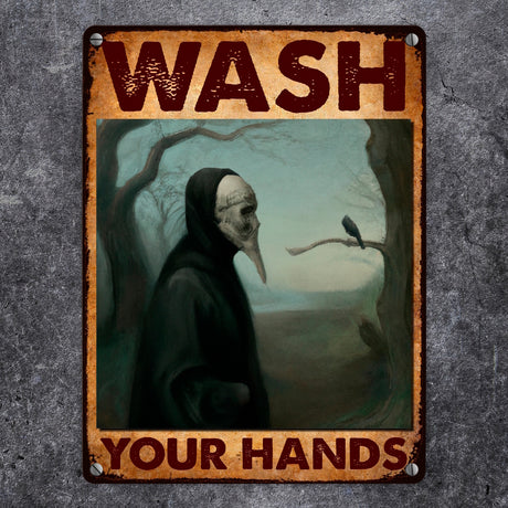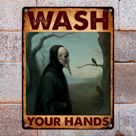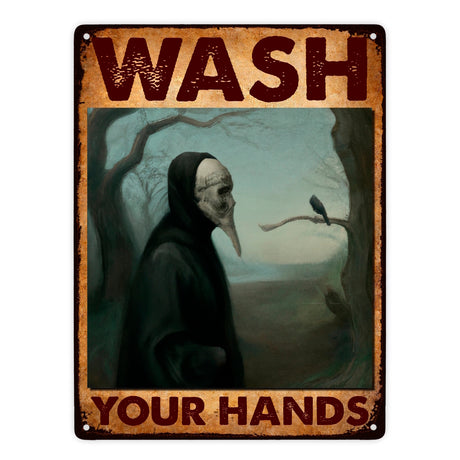 Ab €7,90Grundpreis /Nicht verfügbarAuf LagerPestdoktor Metallschild in 15x20 cm mit Spruch Wash your Hands