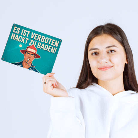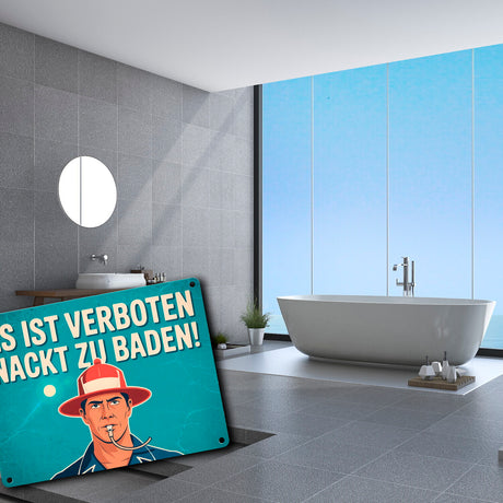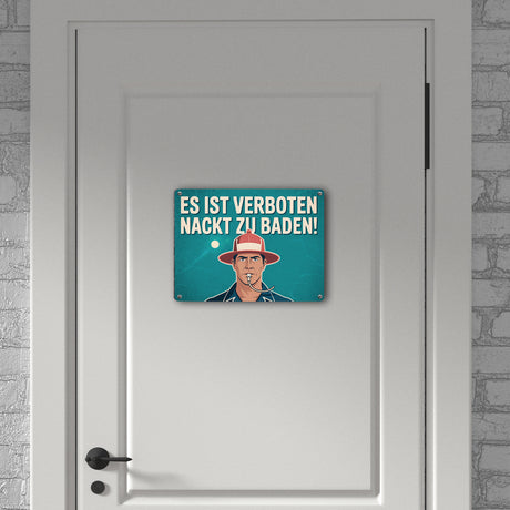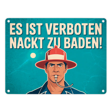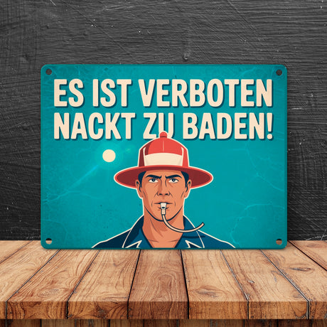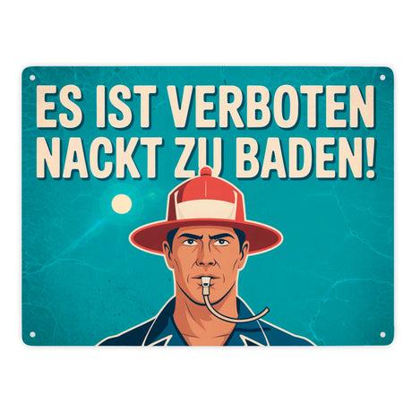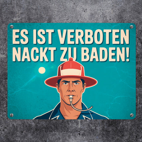 €4,95Grundpreis /Nicht verfügbar Nackt baden verboten Metallschild in 15x20 cm Mann mit Trillerpfeife