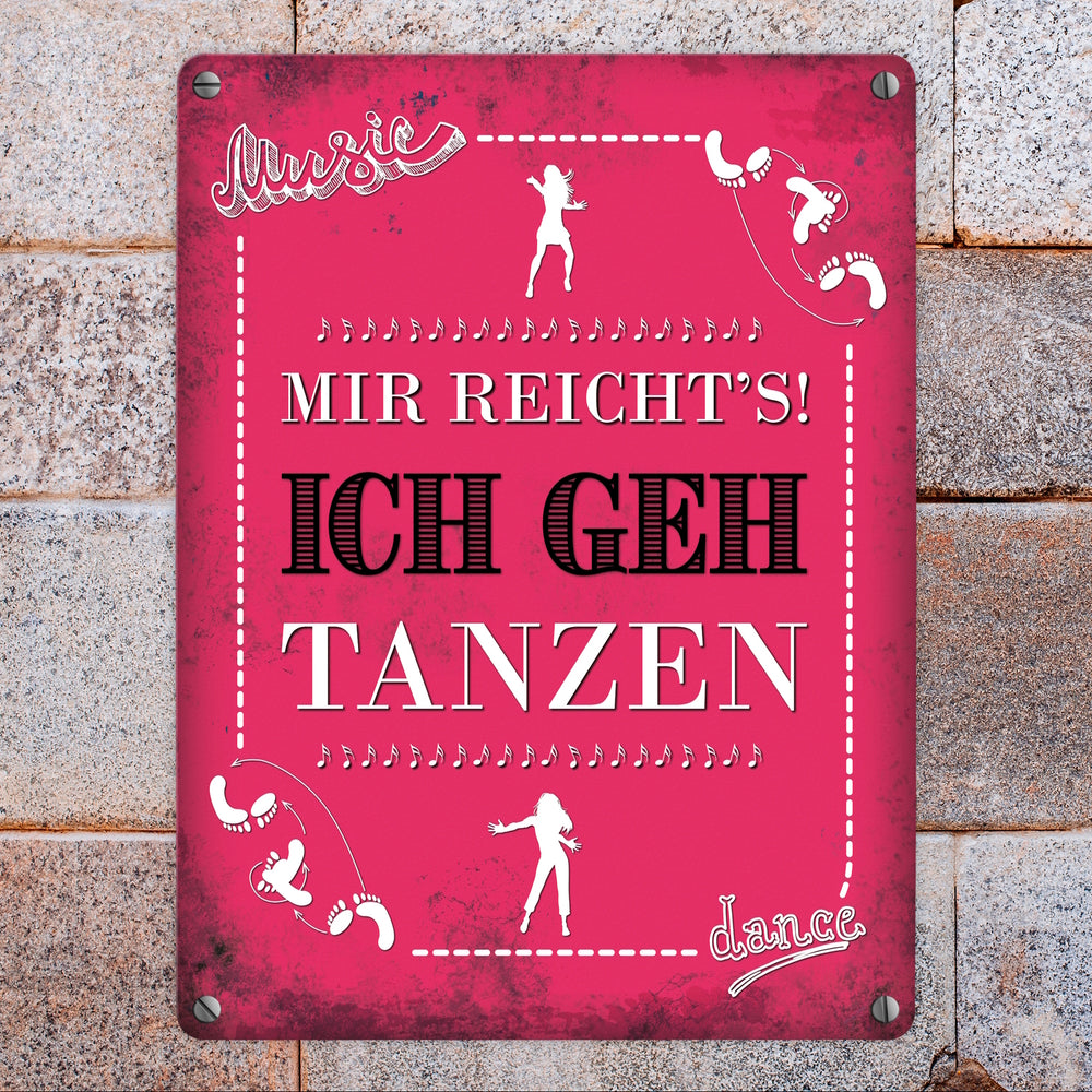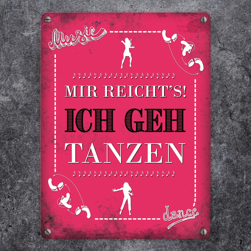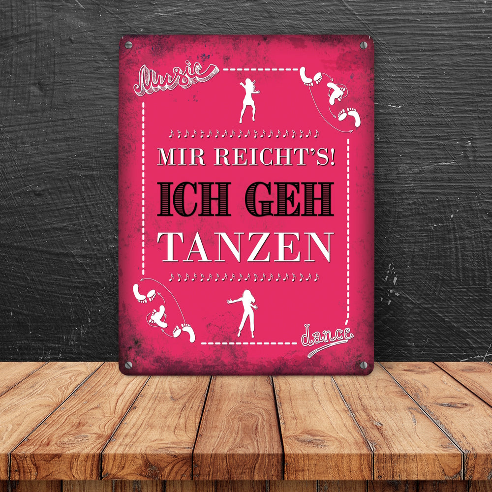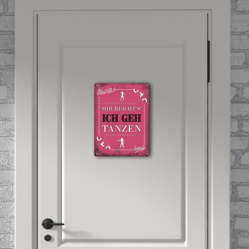• 1x Metallschild mit Spruch: Mir reicht's! Ich geh tanzen in der gewählten Größe