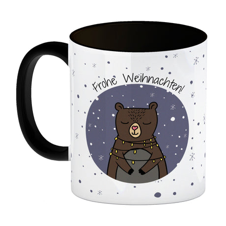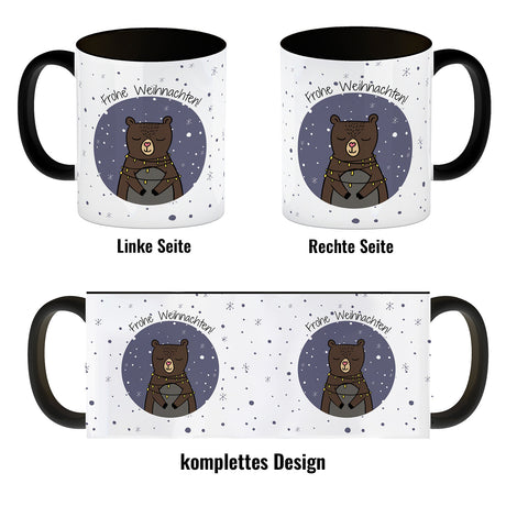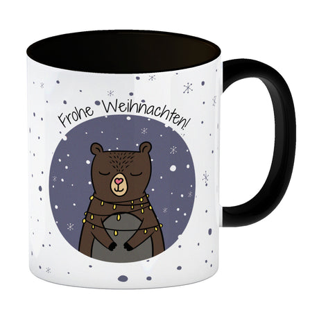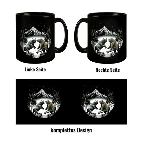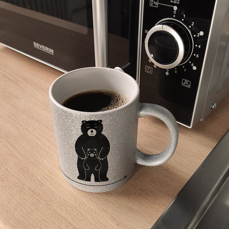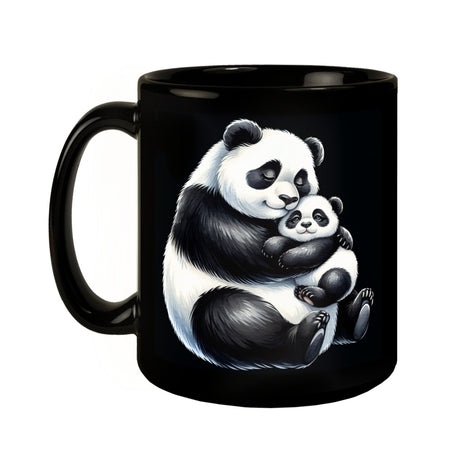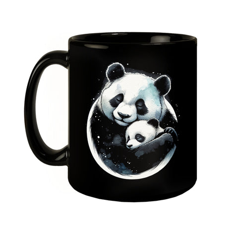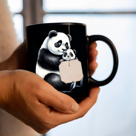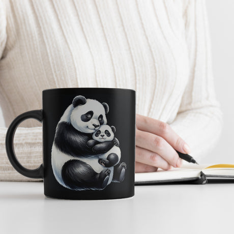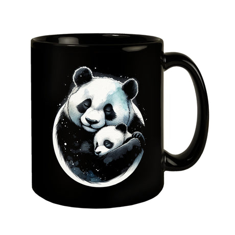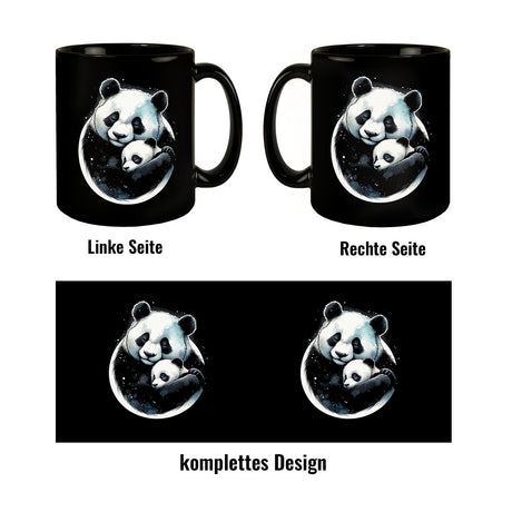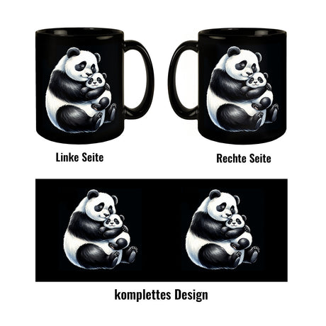 Pandabär Mama mit kleinem Panda Baby Tasse schwarz in Schwarz