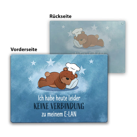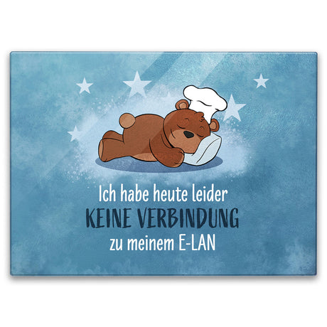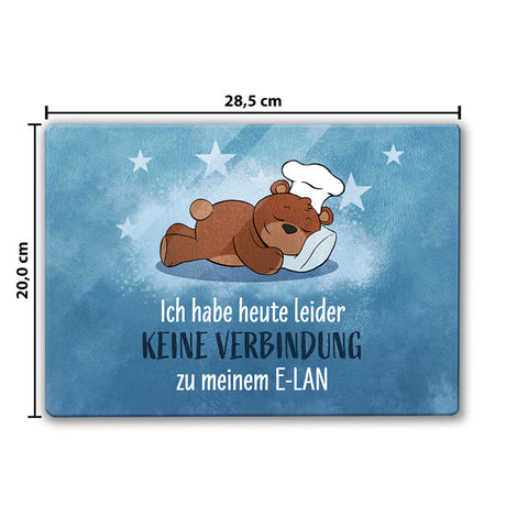 Kuschelbär Schneidebrett aus Glas mit Spruch Keine Verbindung zum E-Lan