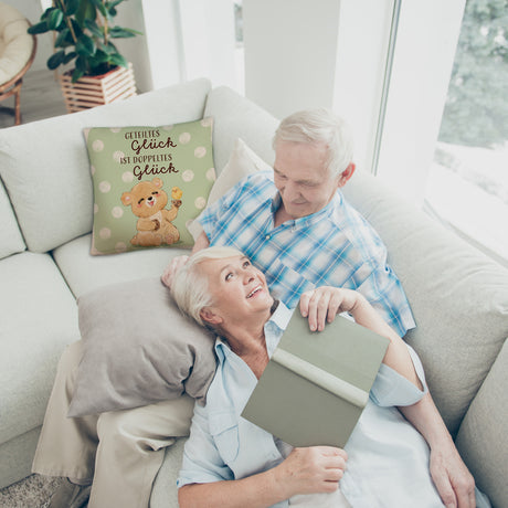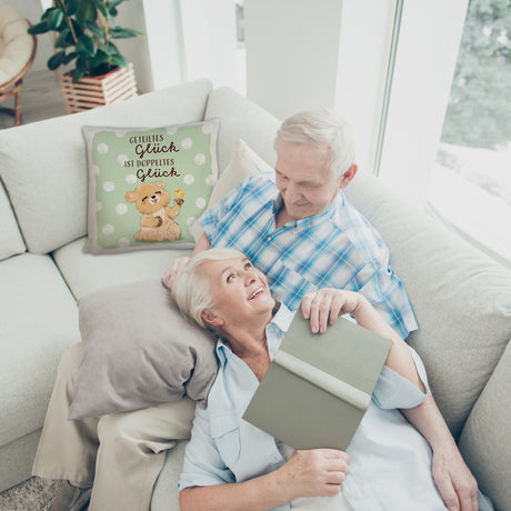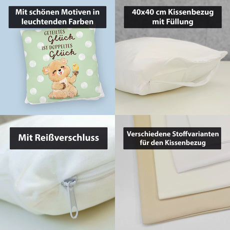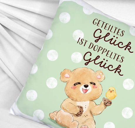Ab €14,95Grundpreis /Nicht verfügbarAuf LagerBär Kissen mit Spruch Geteiltes Glück ist doppeltes Glück