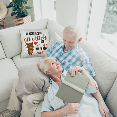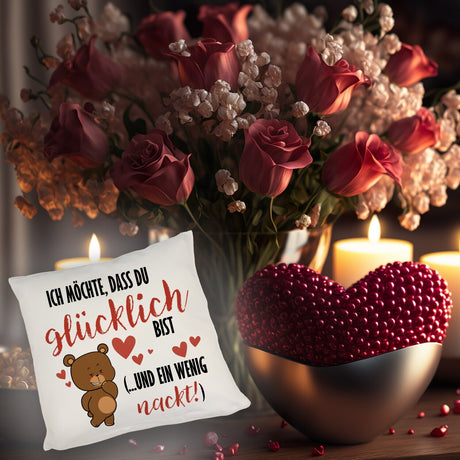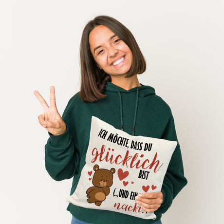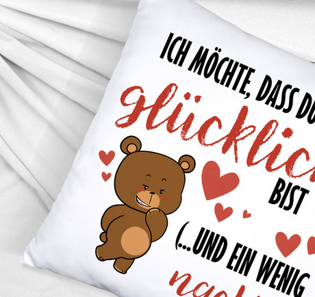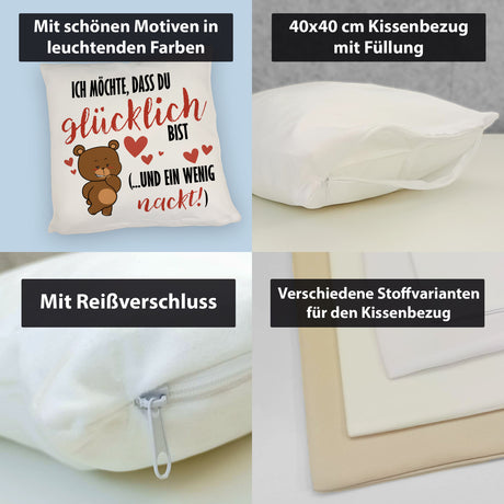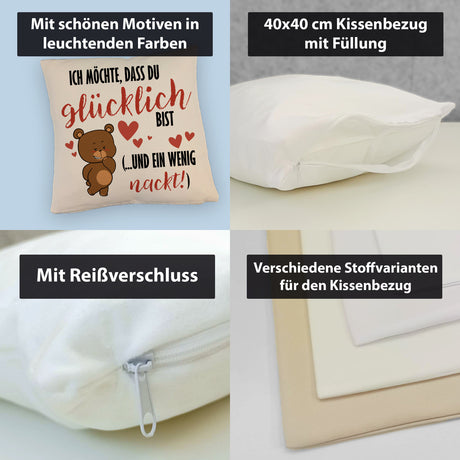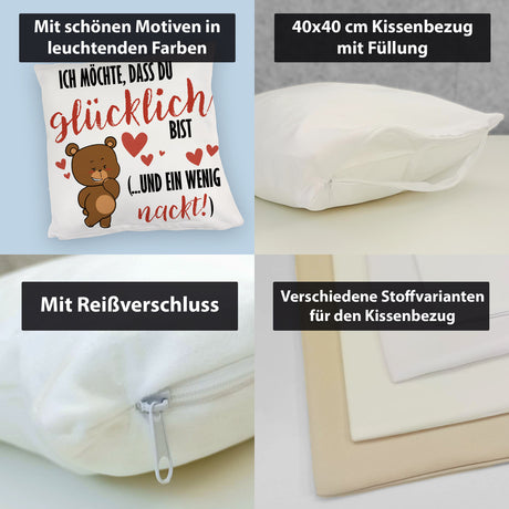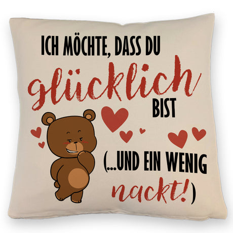 Ab €12,95Grundpreis /Nicht verfügbarAuf LagerKnuddelbär Kissen mit Spruch Strebe nach Glück und Nacktheit