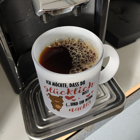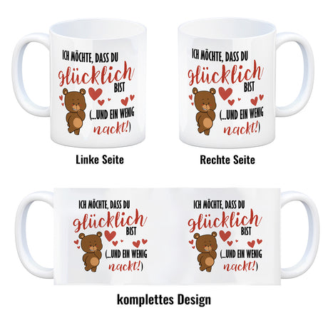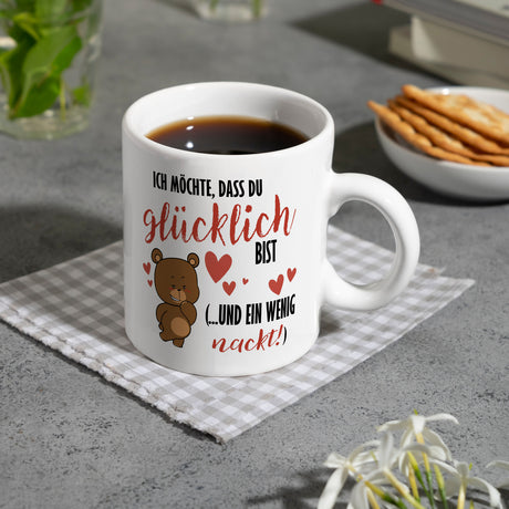 €13,95Grundpreis /Nicht verfügbar Knuddelbär Kaffeebecher mit Spruch Sei glücklich und etwas nackt