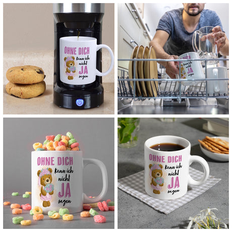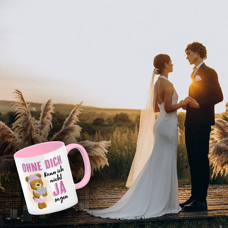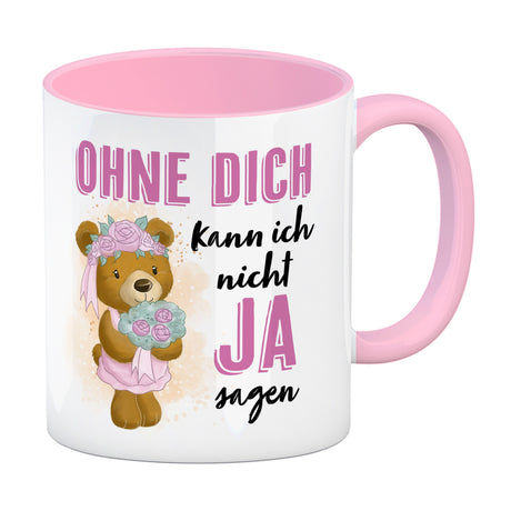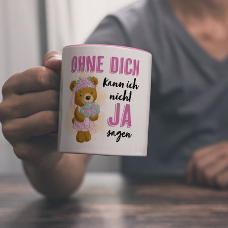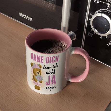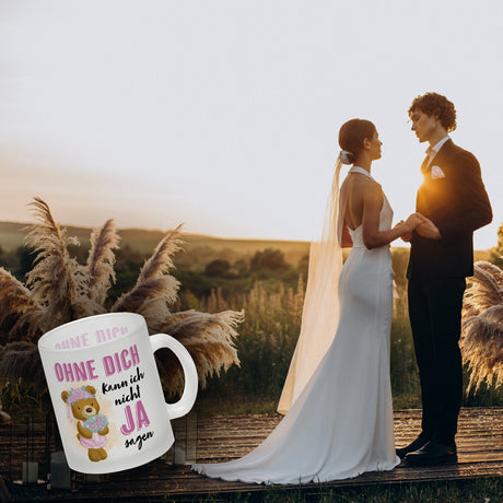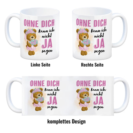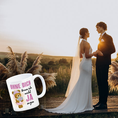 Ab €4,95Grundpreis /Nicht verfügbarAuf LagerTrauzeugin Teddybär Kaffeebecher mit Spruch Ohne Dich nicht Ja sagen