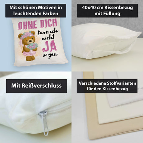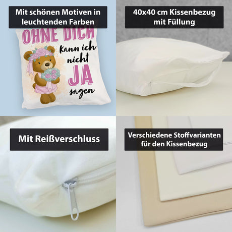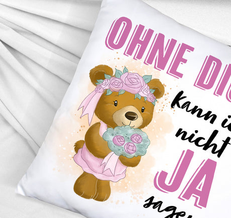 Ab €16,95Grundpreis /Nicht verfügbarAuf LagerTrauzeugin Teddybär Kissen mit Spruch Ohne Dich kann ich nicht Ja sagen