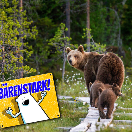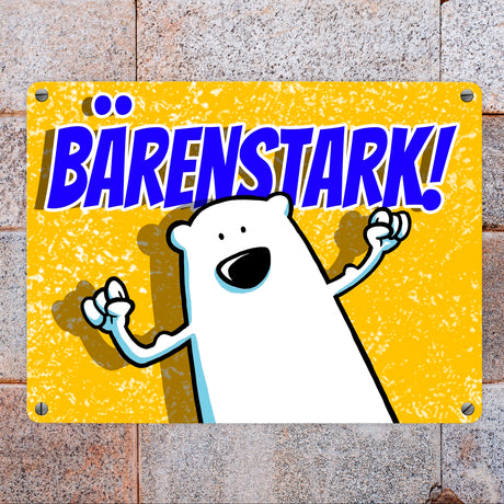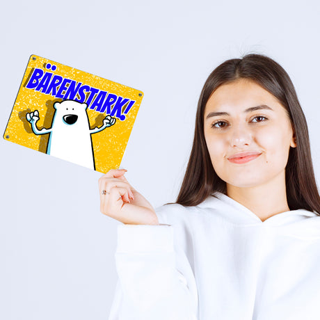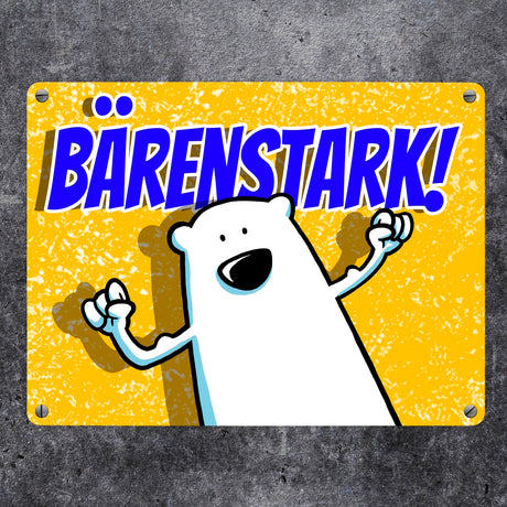 Metallschild mit Bärenmotiv: Bärenstark Schild mit lustigem Comic Bär