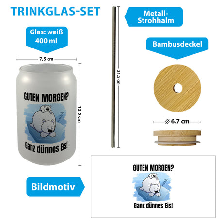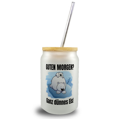 €16,95Grundpreis /Nicht verfügbar Eisbär Trinkglas mit Bambusdeckel mit Spruch Guten Morgen? Ganz dünnes Eis