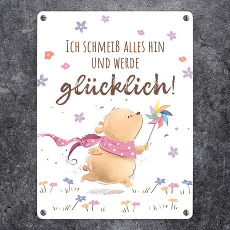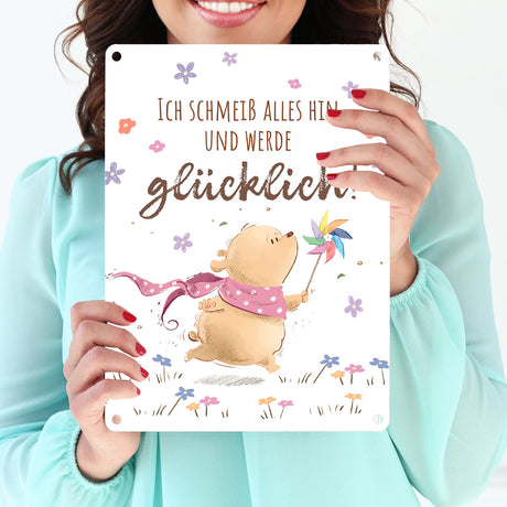 Ab €12,95Grundpreis /Nicht verfügbarAuf LagerGlücklicher Bär Metallschild in 15x20 cm mit Spruch Ich schmeiß alles hin