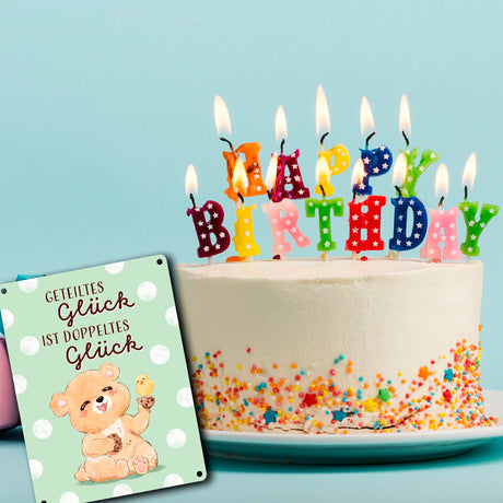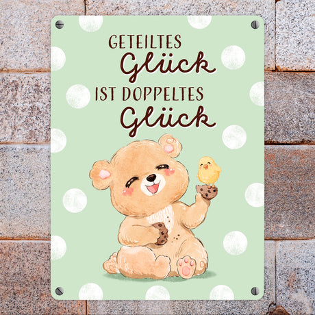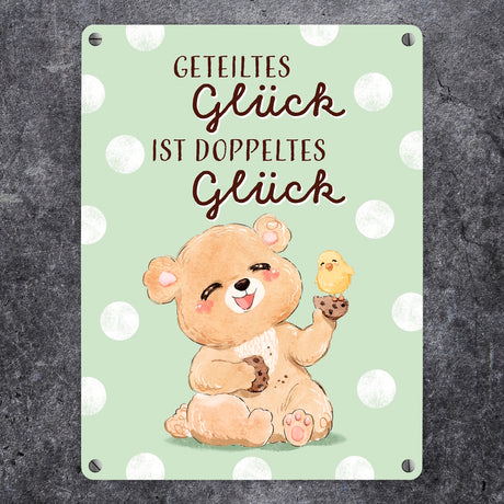 Ab €4,95Grundpreis /Nicht verfügbarAuf LagerBär Metallschild in 15x20 cm mit Spruch Geteiltes Glück ist doppeltes Glück