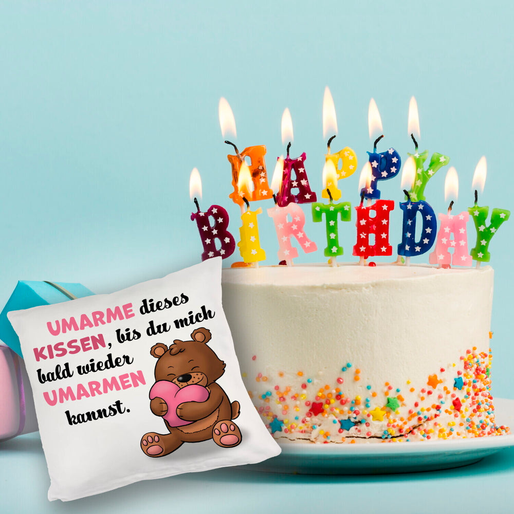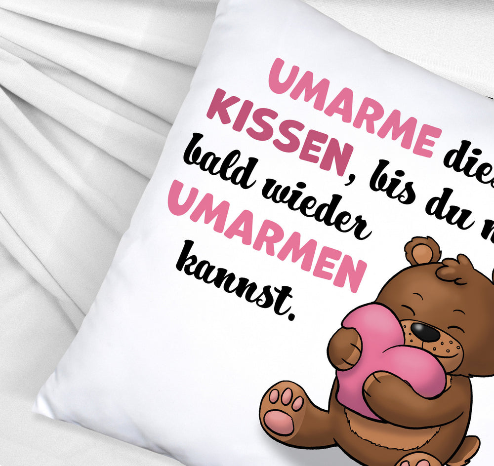 Bär Kissen mit Spruch- Umarme dieses Kissen bis ich da bin