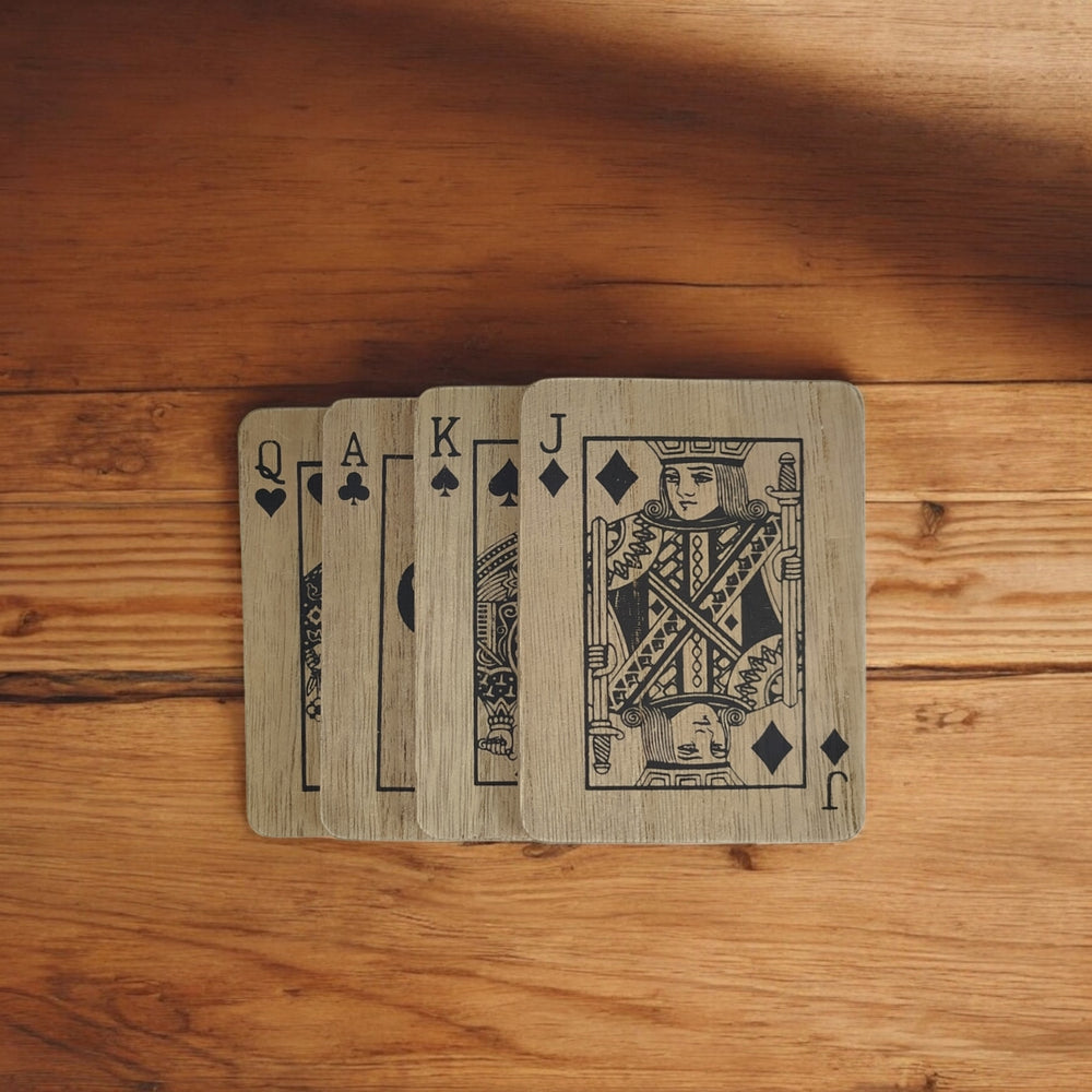 - Erwerben Sie dieses charmante Wohnaccessoire und setzen Sie ein spielerisches Highlight in Ihrem Zuhause! Ideal als Geschenk für Spielkartenliebhaber, sei es zum Geburtstag, Einzug oder als kleines Dankeschön. Diese Untersetzer sind das Ass im Ärmel für stilvolle und funktionale Tischdekoration!