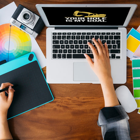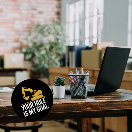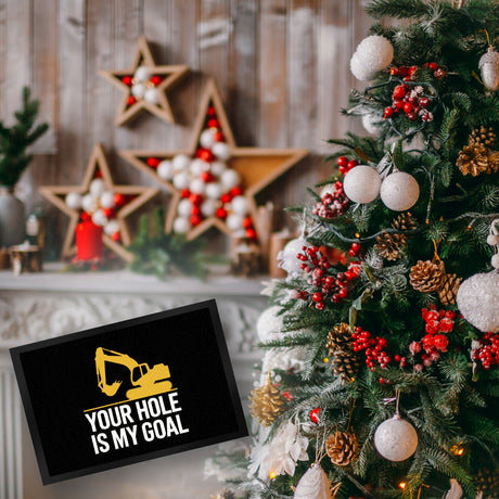 Ab €6,95Grundpreis /Nicht verfügbarAuf LagerYOUR HOLE IS MY GOAL Fußmatte in 35x50 cm mit gelbem Bagger