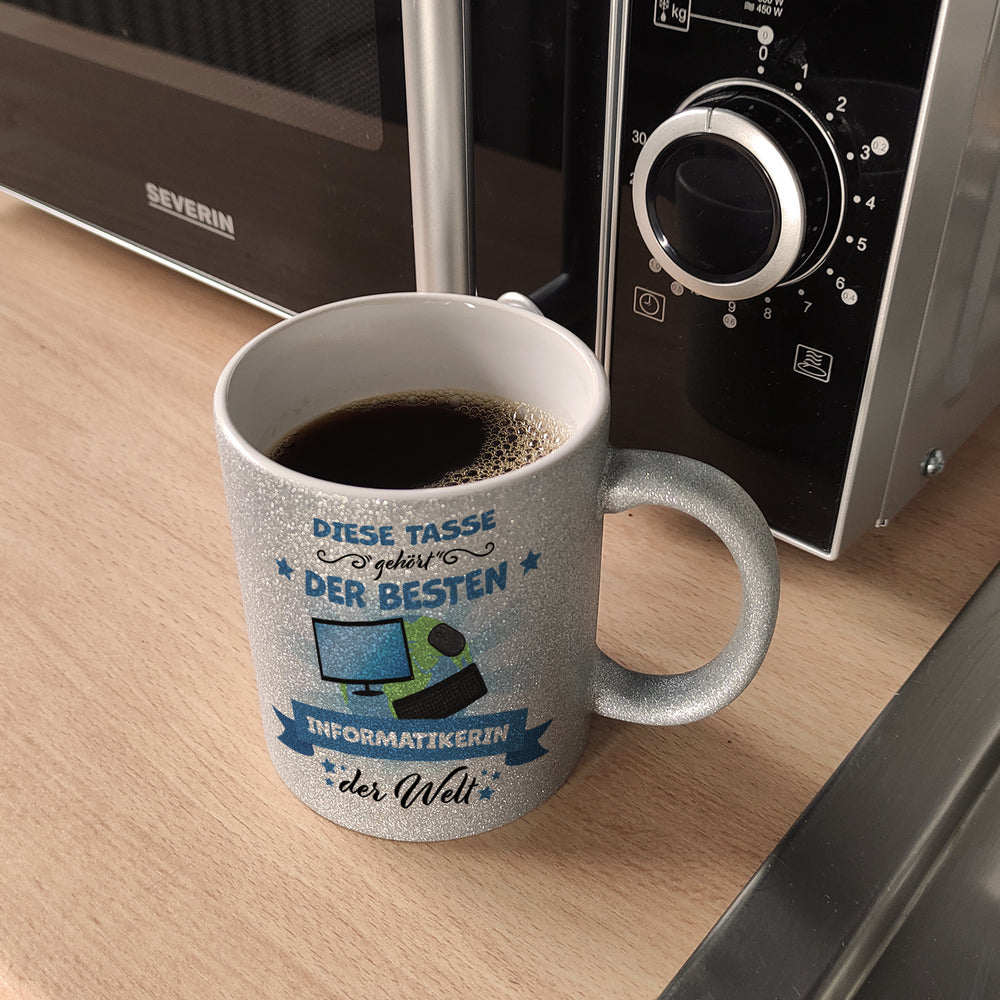 Gönnen Sie Ihrer besten Informatikerin der Welt einen Kaffeebecher, der sie würdig repräsentiert. Unser Beste Informatikerin der Welt Kaffeebecher ist nicht nur eine originelle Geschenkidee, sondern auch ein besonderes Statement. Erhältlich in unterschiedlichen Ausführungen – von der weißen Standardtasse über die farbigen Henkel und Innenseiten bis hin zur exklusiven Silberedition mit Glitzereffekt. Jeder Becher wird mit Sorgfalt in Handarbeit hergestellt und überzeugt durch seine hochwertige Qualität. Mit dieser kleinen Geste können Sie jemanden herausheben und ihn oder sie als beste Informatikerin der Welt feiern!