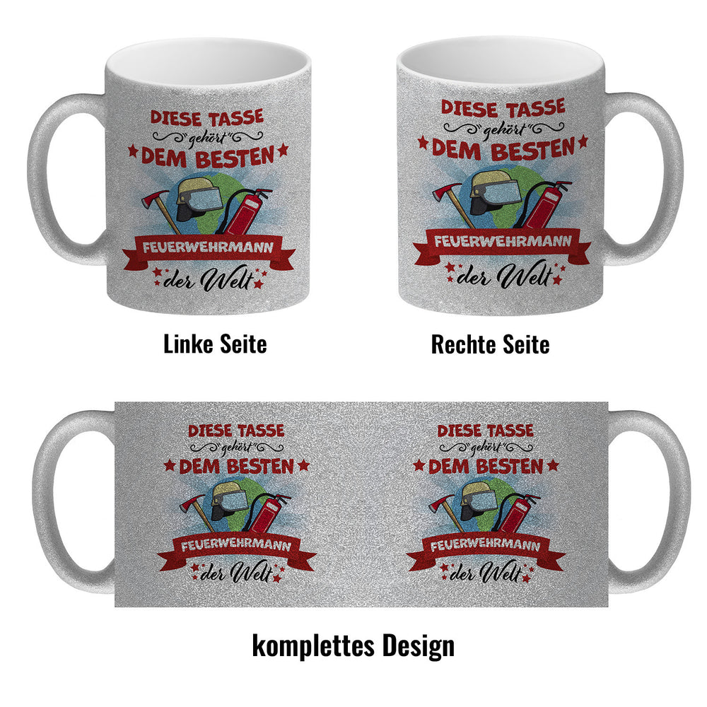 Der Bester Feuerwehrmann der Welt Kaffeebecher ist eine ideale Geschenkidee für Freunde und Kollegen. Erhältlich in unterschiedlichen Varianten - als weiße Standardtasse, mit farbigem Henkel und Innenseite, als edle Glastasse oder in der exklusiven Silberedition mit Glitzereffekt - ist dieser Kaffeebecher die perfekte Wahl, um den besten Feuerwehrmann zu ehren. Jede Tasse wird sorgfältig in Handarbeit von unserer Tassen-Manufaktur in Deutschland hergestellt. Gönn' deinem Kollegen oder Freund eine besondere Anerkennung für ihre Arbeit und überrasche ihn mit dieser schönen Tasse. Der Bester Feuerwehrmann der Welt Kaffeebecher ist immer ein einzigartiges Geschenk, das jeder Feuerwehrmann lieben wird!
