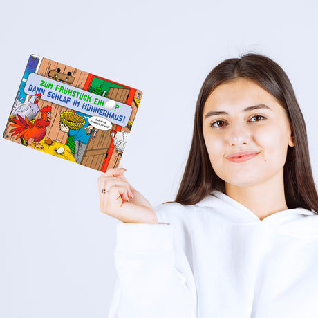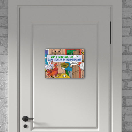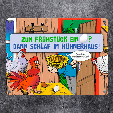 Ab €8,95Grundpreis /Nicht verfügbarAuf LagerEin Ei zum Frühstück - dann schlaf im Hühnerhaus Comic Metallschild mit Spruch