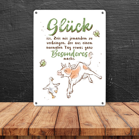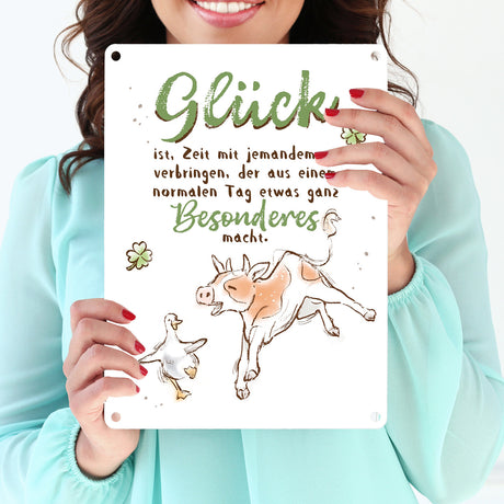 Ab €6,95Grundpreis /Nicht verfügbarAuf LagerKuh und Gans Metallschild in 15x20 cm mit Spruch Glück ist besondere Zeit mit jemandem