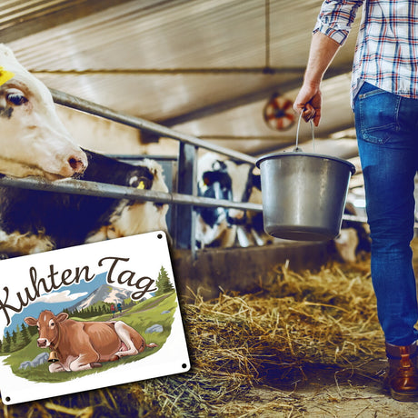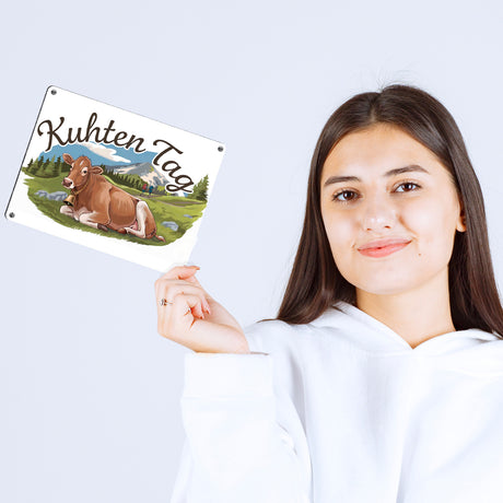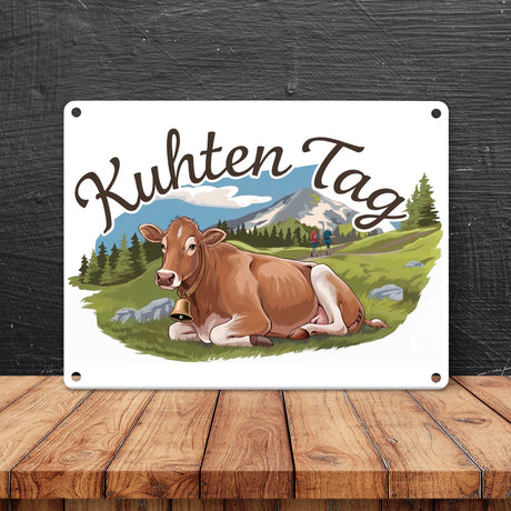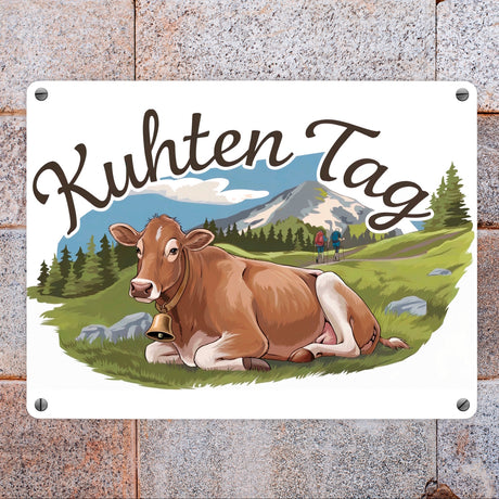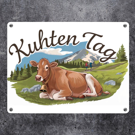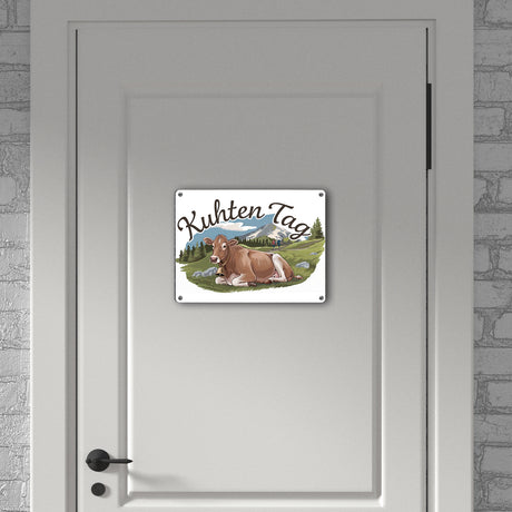 Ab €8,95Grundpreis /Nicht verfügbarAuf LagerBraune Kuh auf Gras Metallschild in 15x20 cm mit Spruch Kuhten Tag