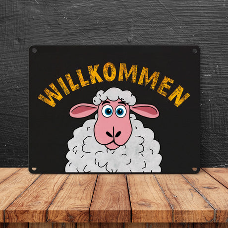 Ab €16,95Grundpreis /Nicht verfügbarAuf LagerWillkommen Cartoon Schaf Metallschild in 15x20 cm für Haustür