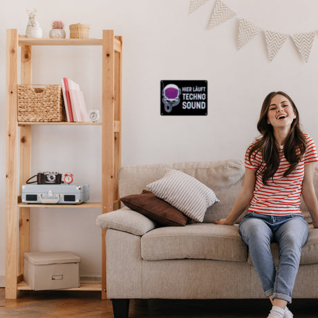 Ab €8,95Grundpreis /Nicht verfügbarAuf LagerHier läuft Techno Sound Metallschild mit Astronautenhelm für Raver