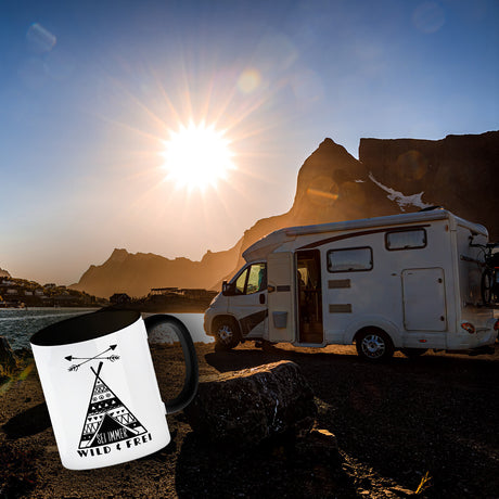 Camping King Kaffeebecher mit wunderschönen Reisemotiven