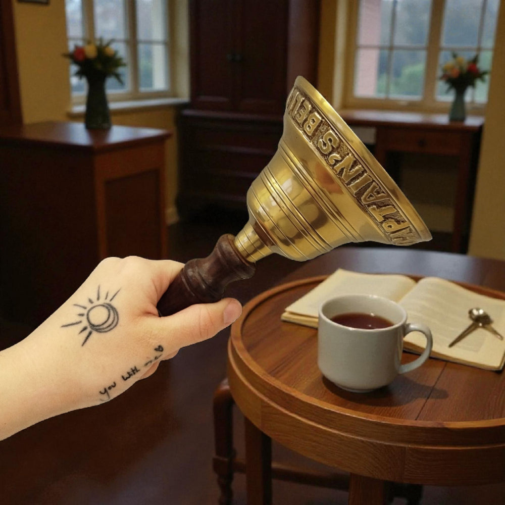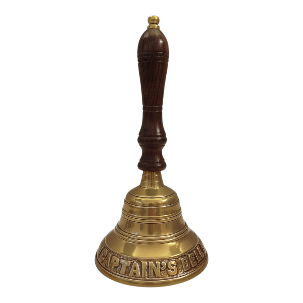 - Diese Tischklingel beeindruckt mit ihrem rustikalen, dunkelbraunen Griff und der glänzend goldpolierten Glocke. Der Schriftzug "CAPTAIN'S BELL" verleiht ihr einen authentischen Touch. Die kleine Kugel im Inneren sorgt für lautes Klingeln, ideal um die Aufmerksamkeit auf den Kapitän zu lenken. Ein echtes Highlight auf jedem Tisch!