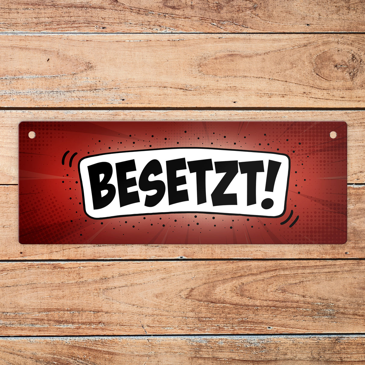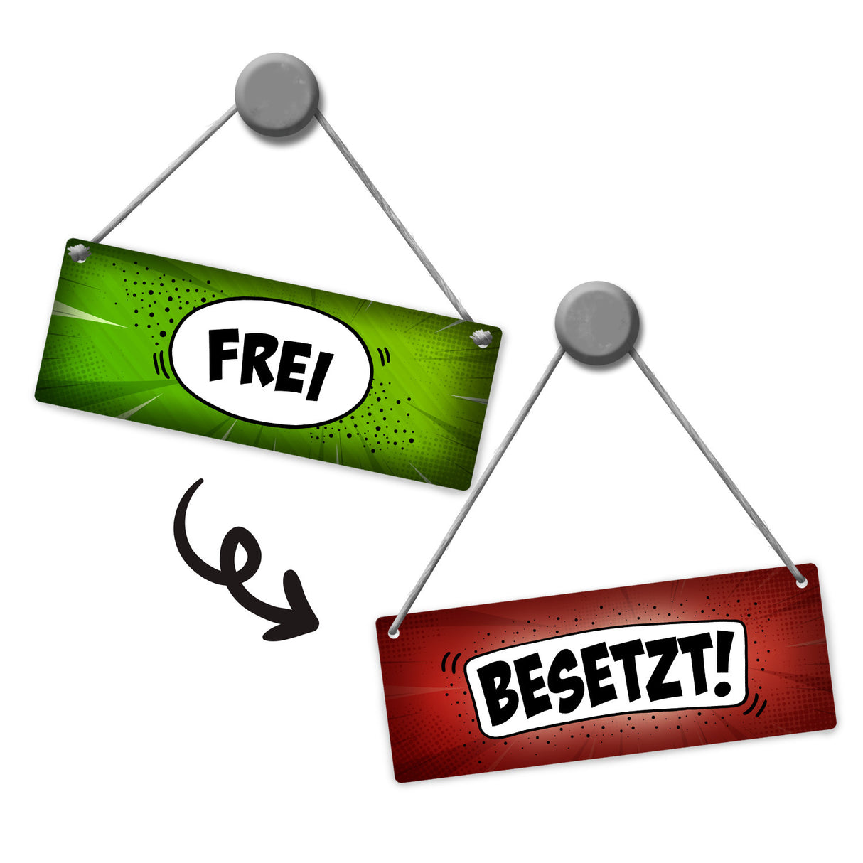 - Lieferumfang: 1x Besetzt oder Frei Wendeschild mit Kordel im Comic-Stil