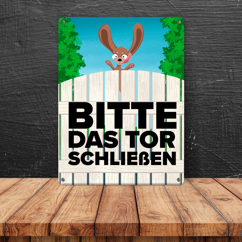 - Du bist Hundehalter und dein Hund büxt dir regelmäßig durch das offene Gartentor aus? Dann ist dieses Schild perfekt für dich. Dank dem lustigen Blechschild weiß jeder sofort, dass das Gartentor geschlossen bleiben soll.