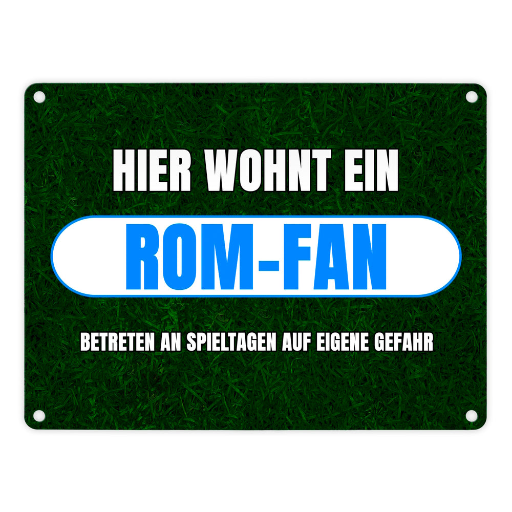 Hier wohnt ein Rom-Fan Metallschild in 15x20 cm mit Rasenmotiv