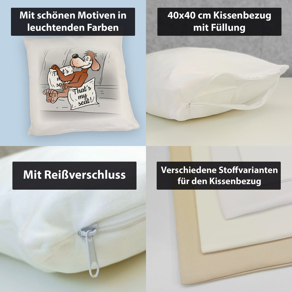 - 1x That's my seat! Hunde Kissen mit Comichund in der gewählten Ausführung