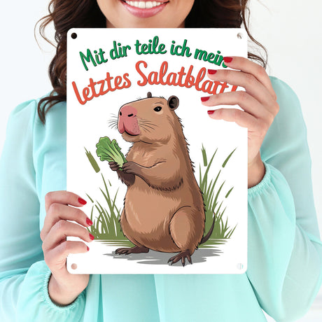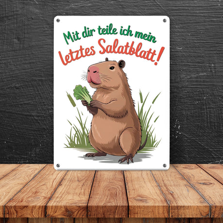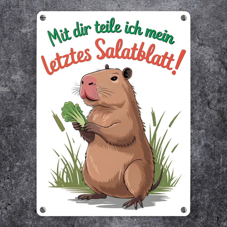 Ab €7,90Grundpreis /Nicht verfügbarAuf LagerMit dir teile ich mein letztes Salatblatt! Metallschild in 15x20 cm mit lustigem Capybara