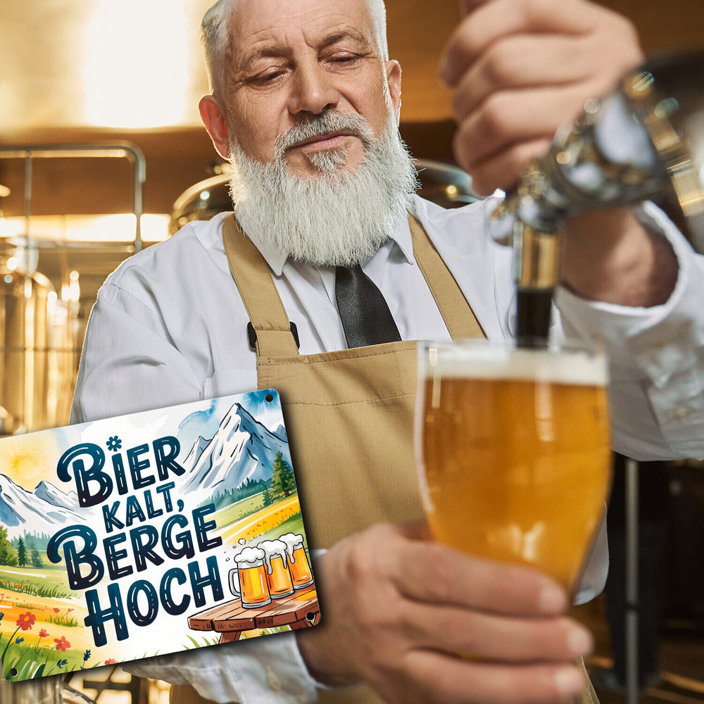 • 1x Bier Berge Bayern Metallschild in 15x20 cm Bier kalt Text in der gewählten Größe