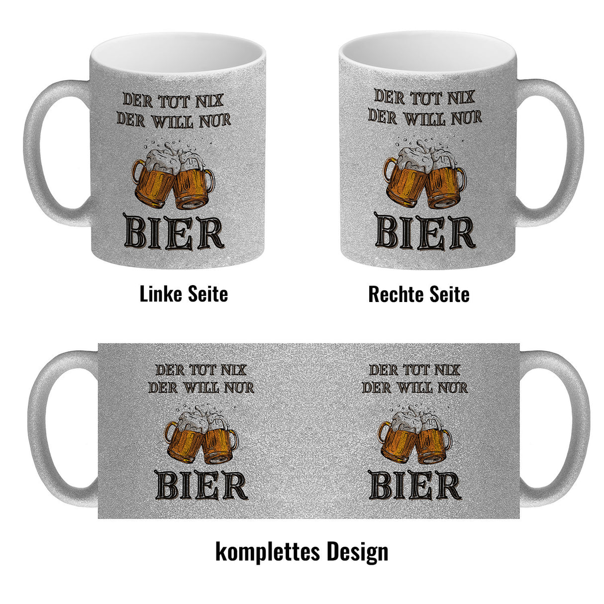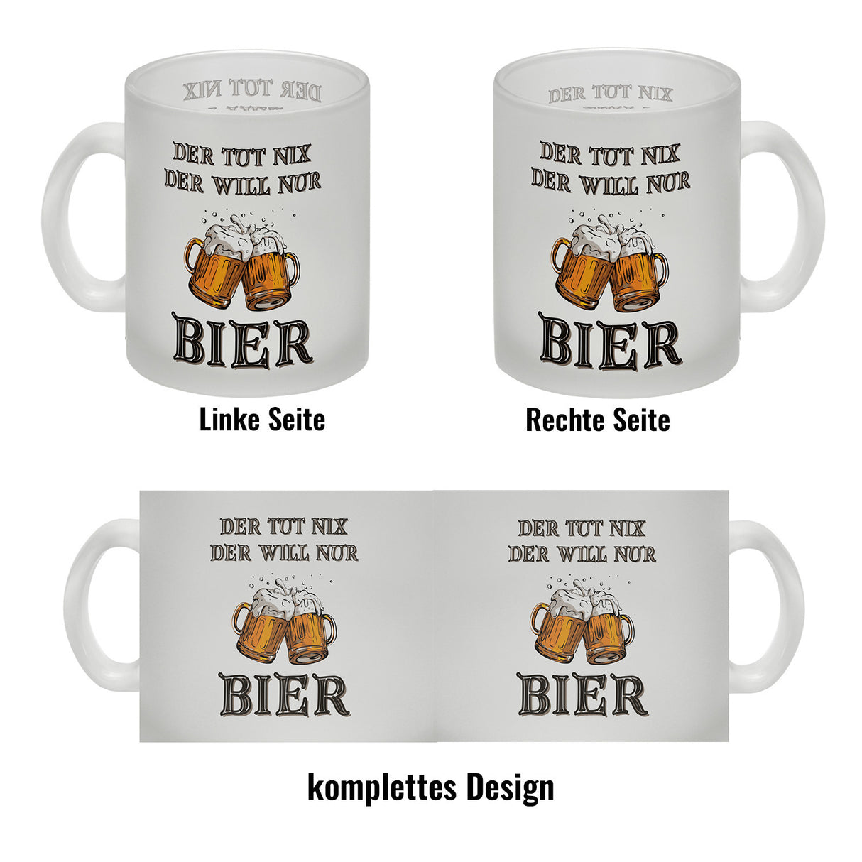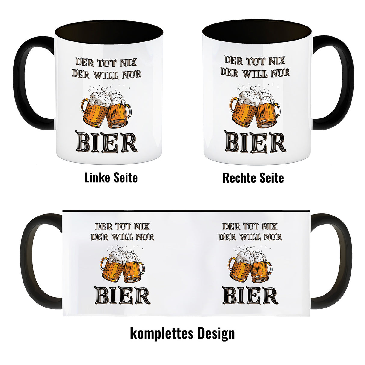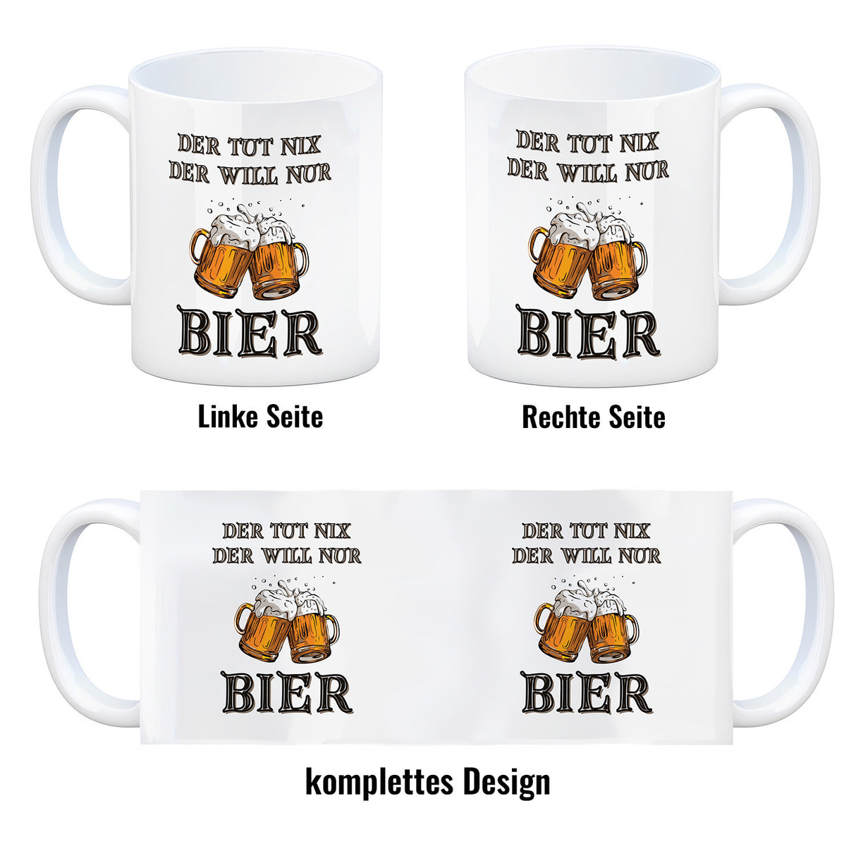 - 1x Bier Kaffeebecher mit Spruch Der tut nix der will nur Bier in der gewählten Ausführung