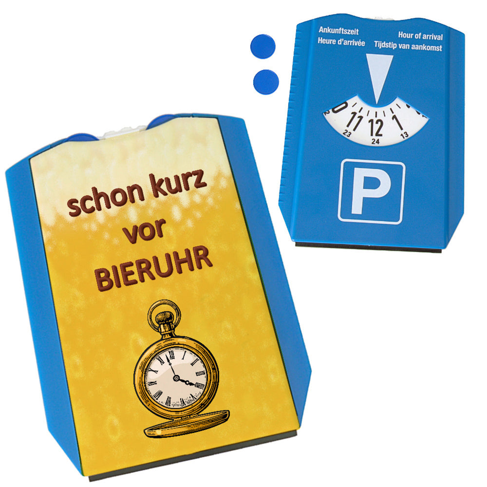 - Der Spruch 'schon kurz vor Bieruhr' ist auf der Rückseite der Parkscheibe aufgedruckt und schmückt immer dann das Auto oder die Windschutzscheibe wenn gerade keine Parkscheibe benötigt wird.