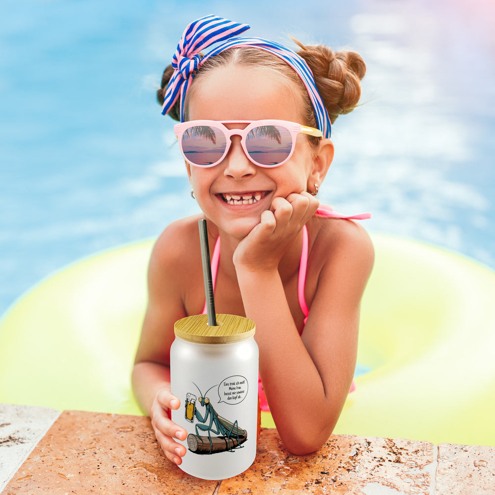 Gottesanbeterin mit Bier - Eins trink ich noch Trinkglas mit Bambusdeckel